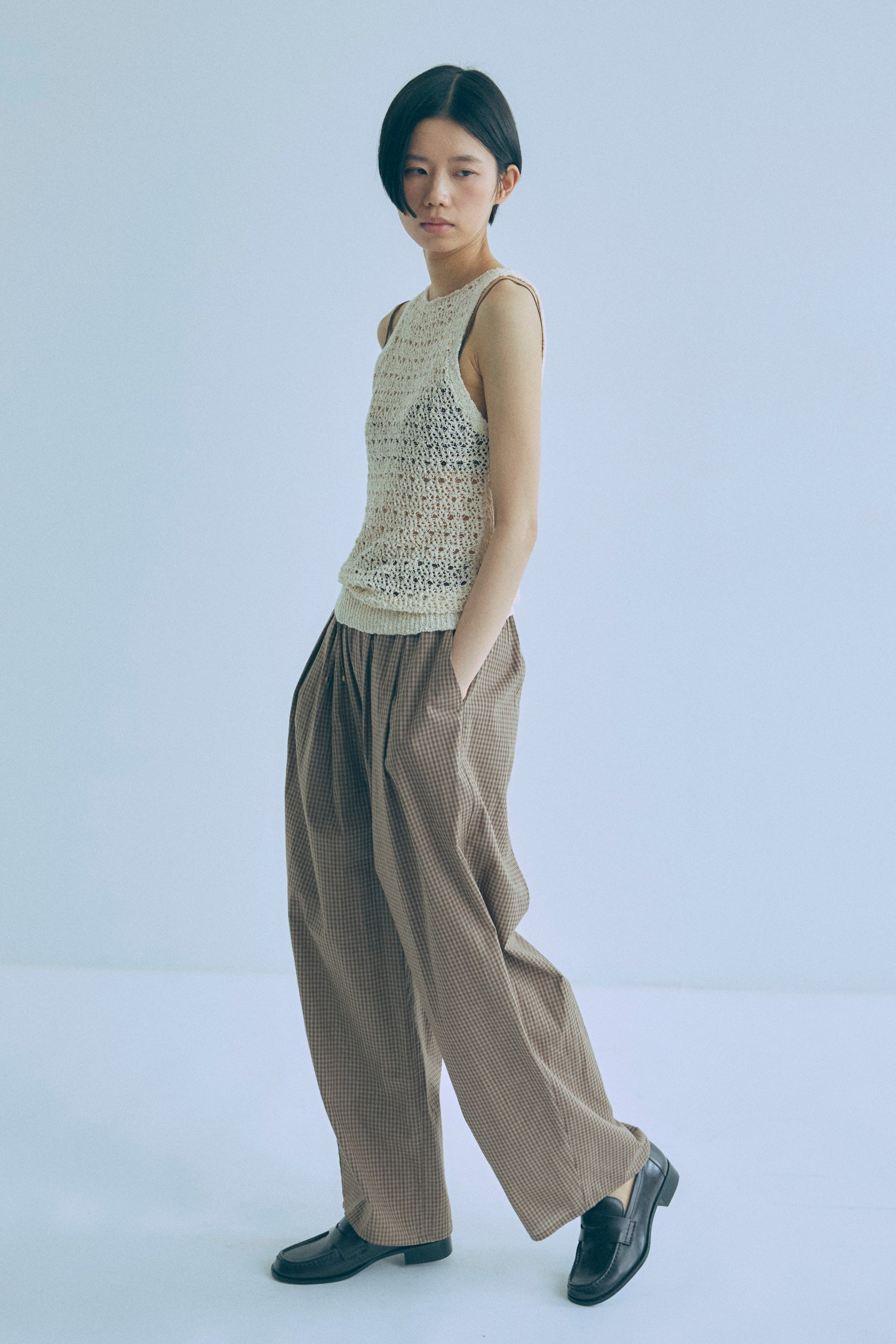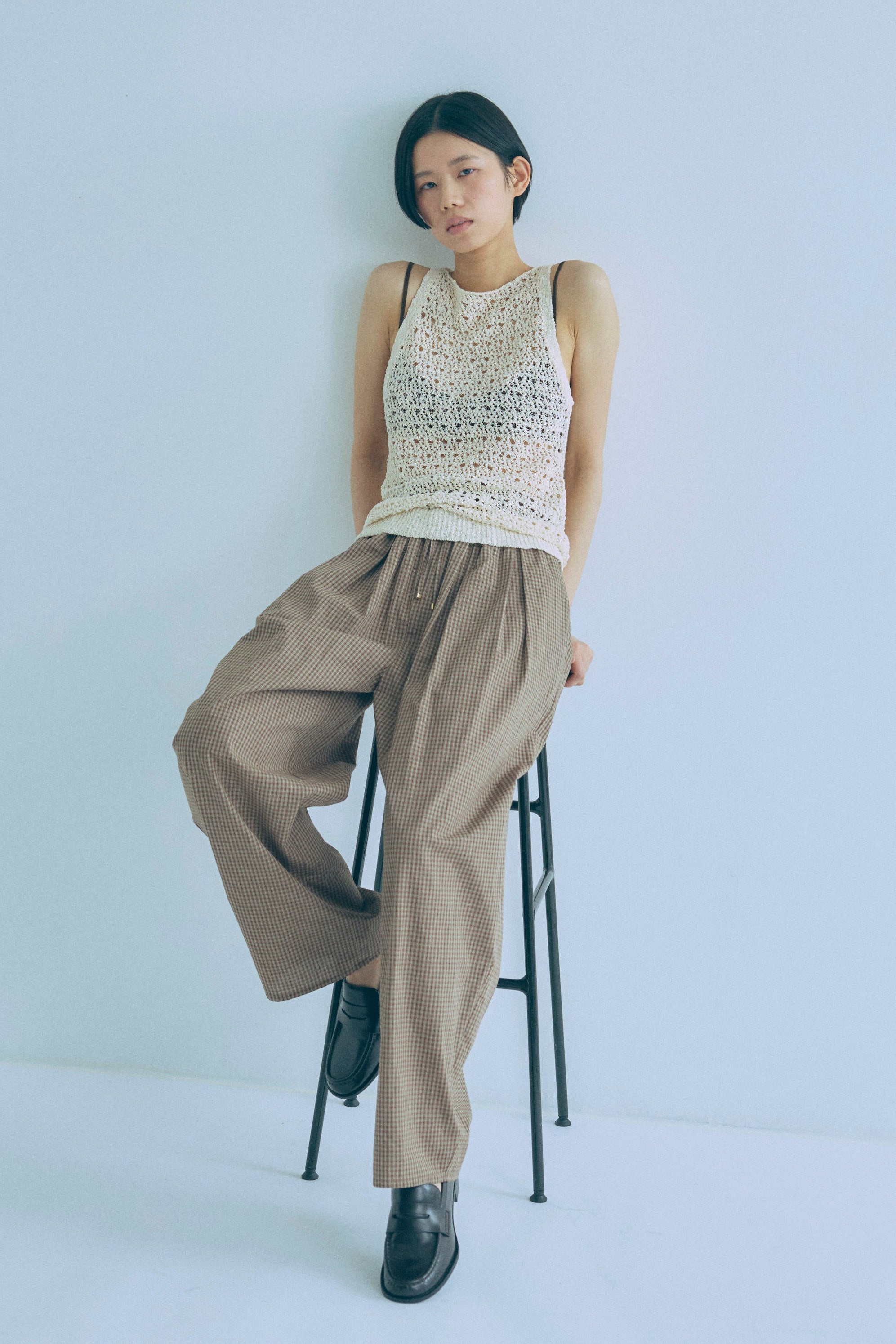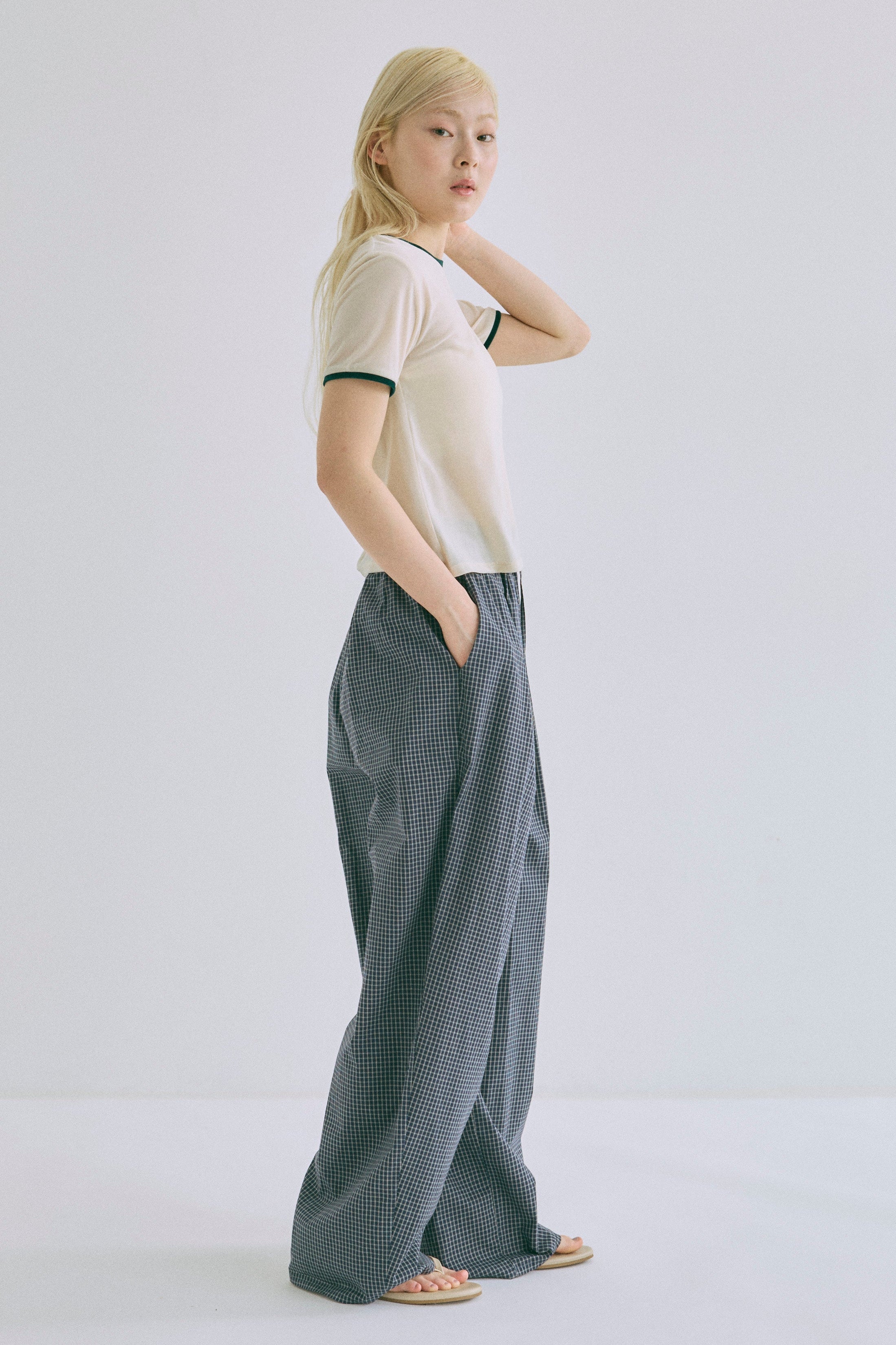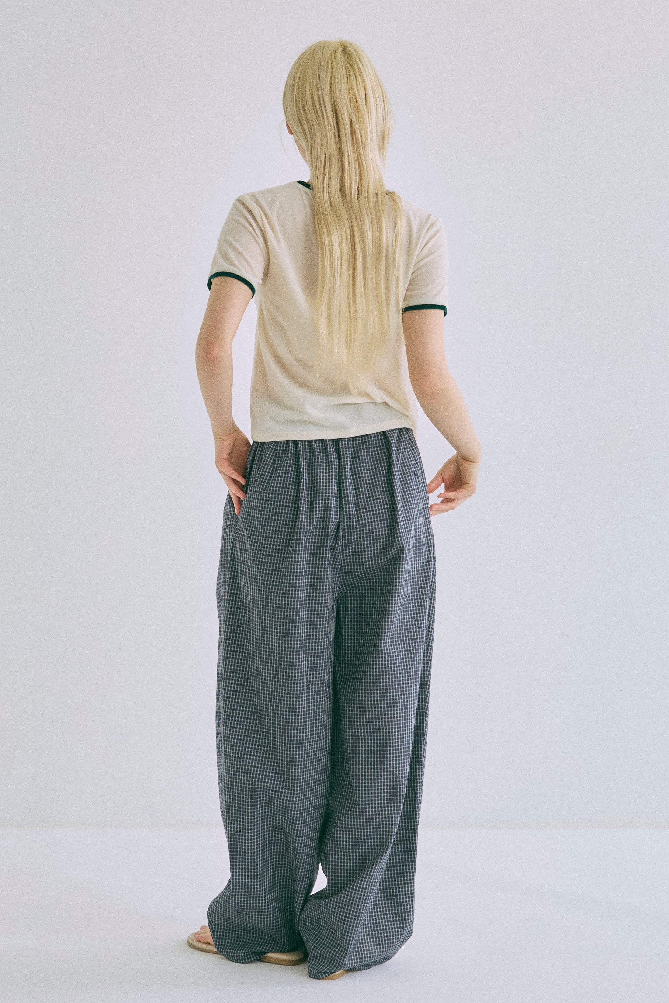 Airy Check Tuck Easy-Pants