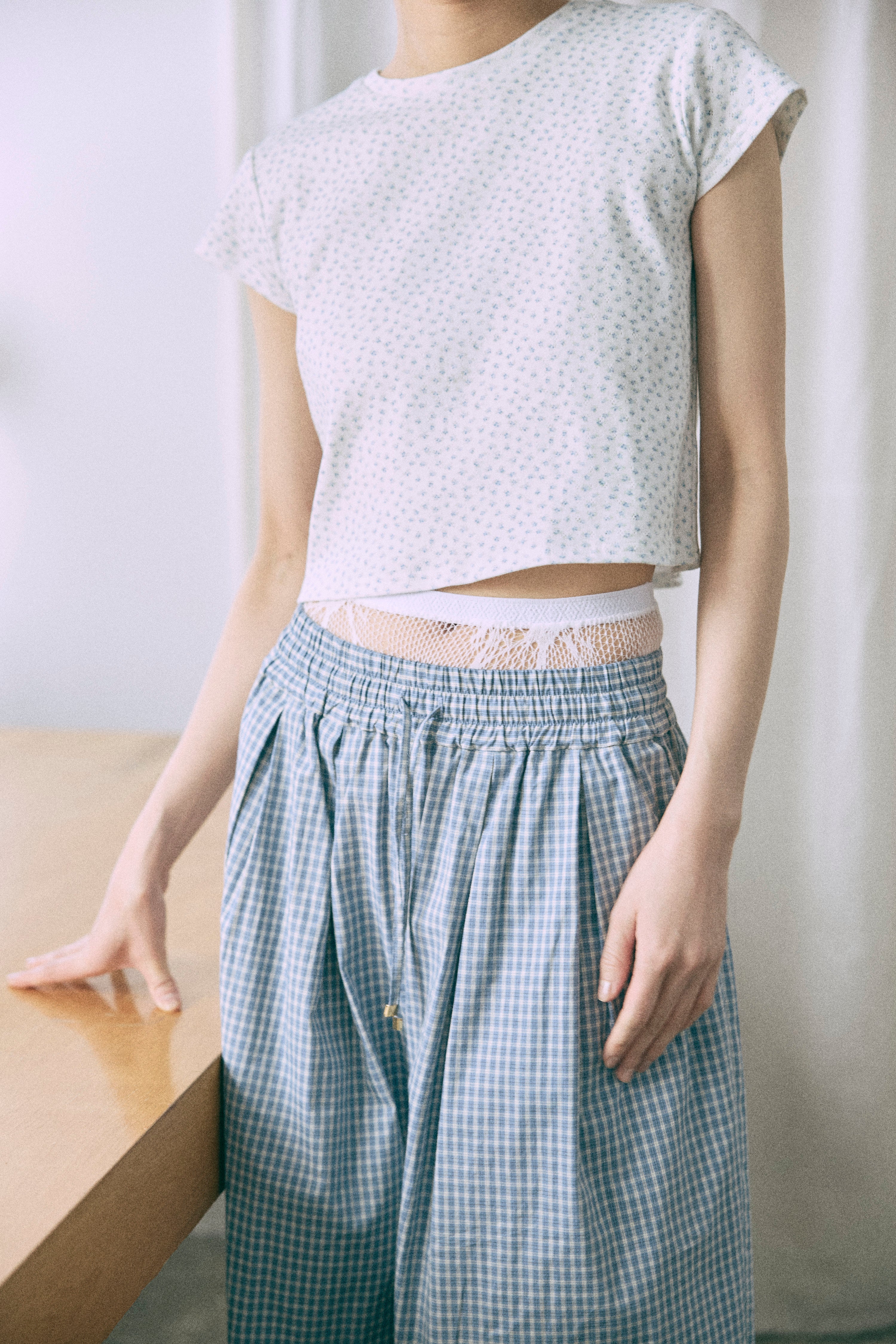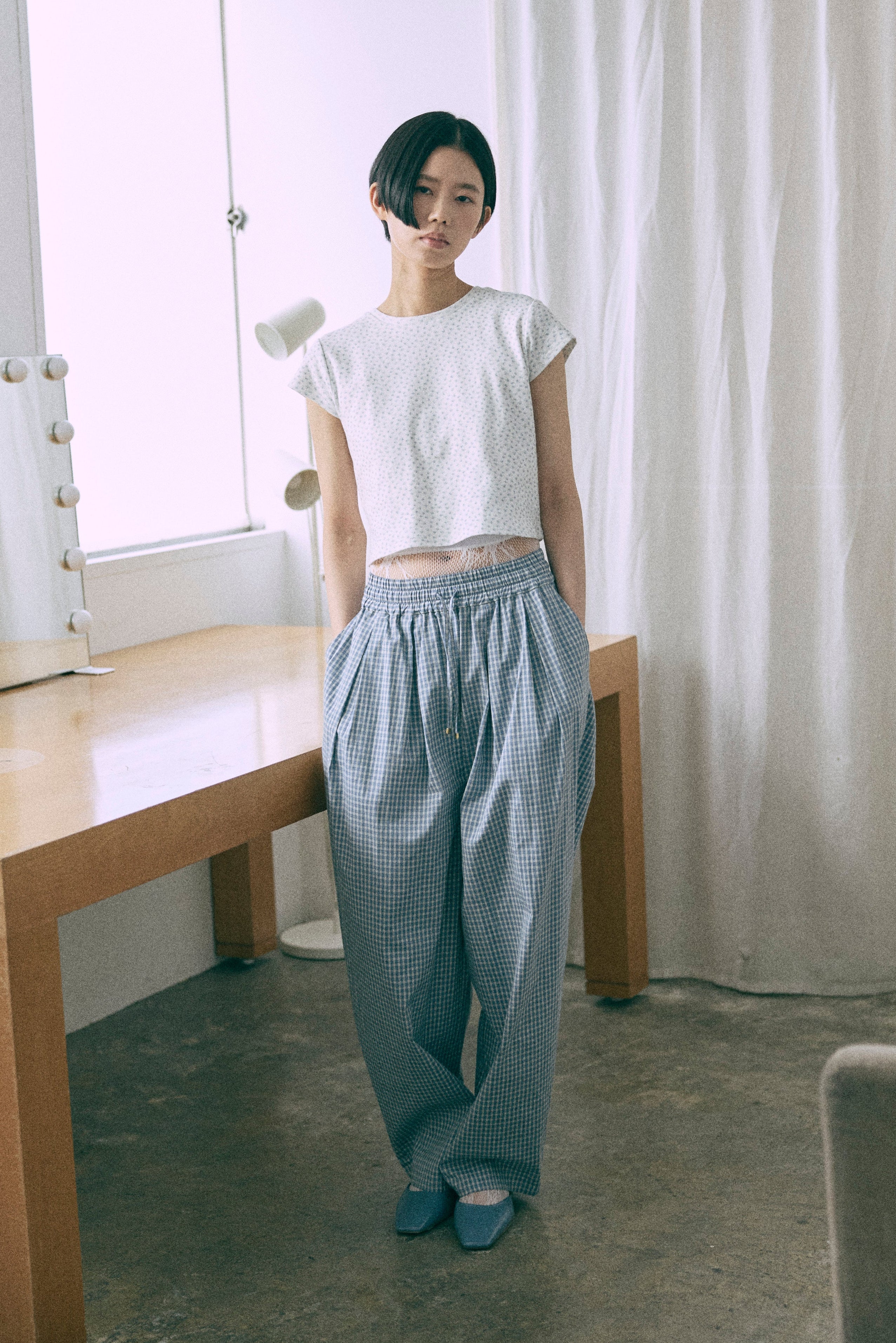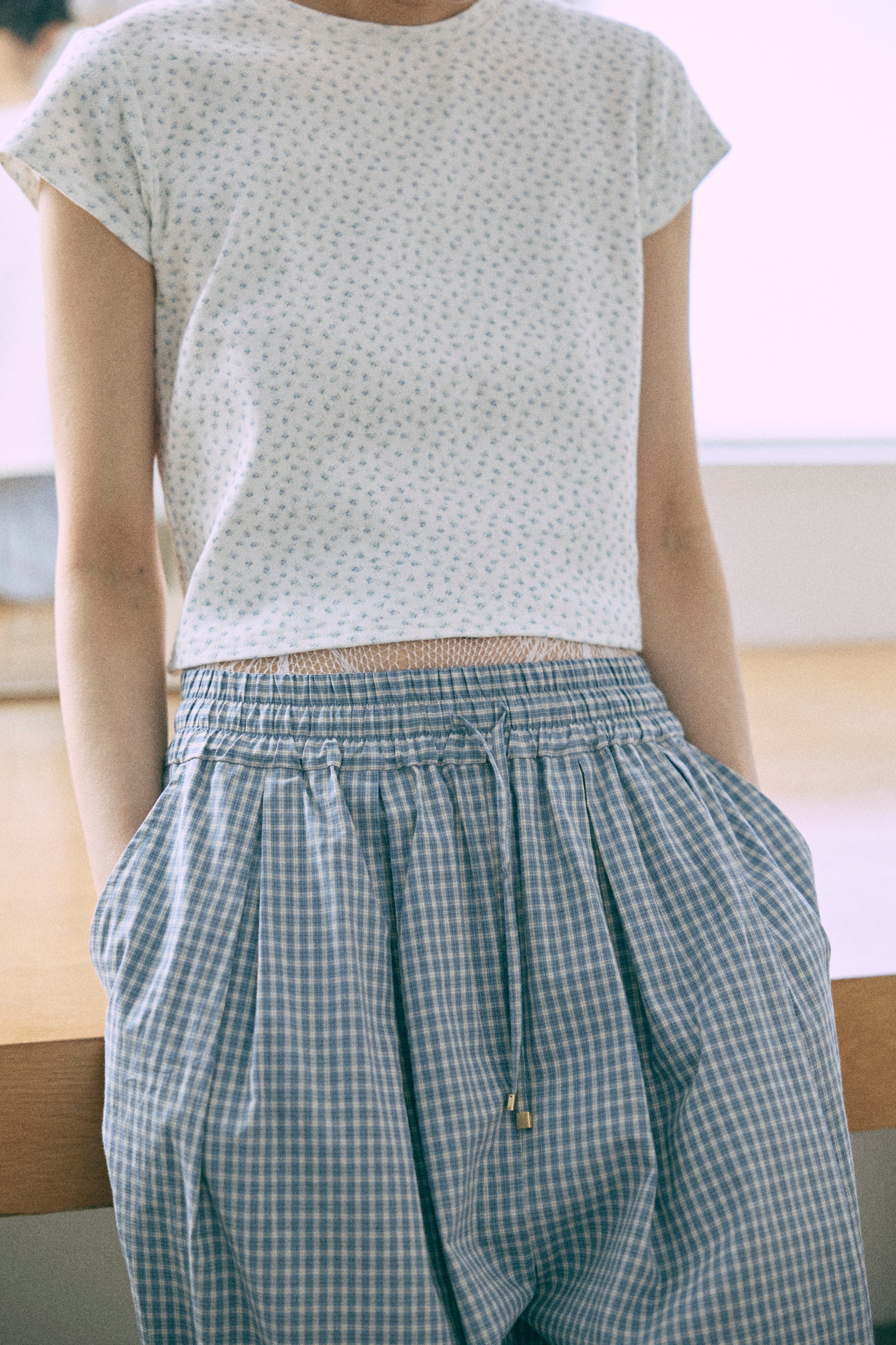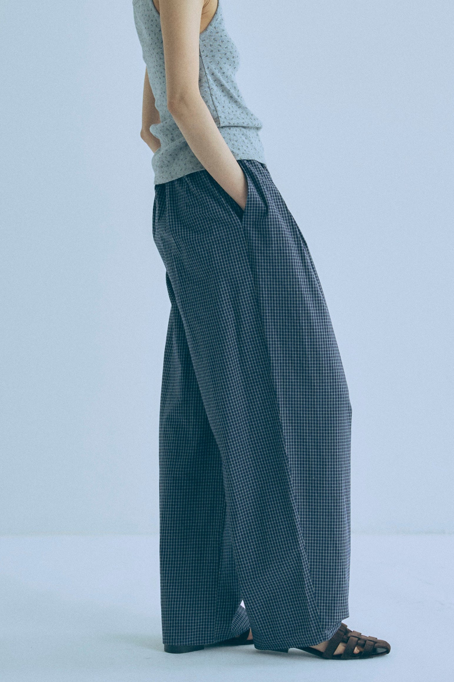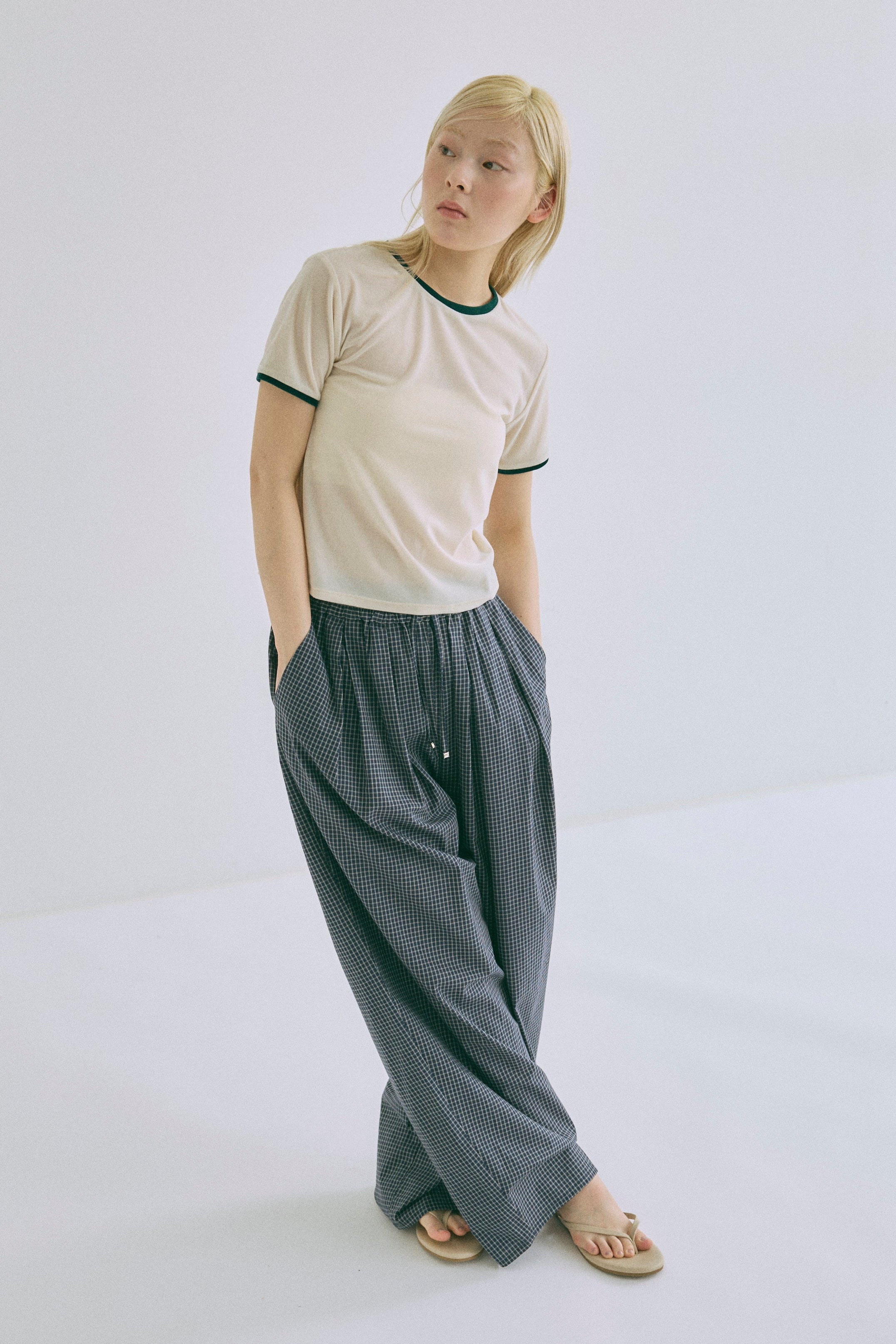 Airy Check Tuck Easy-Pants