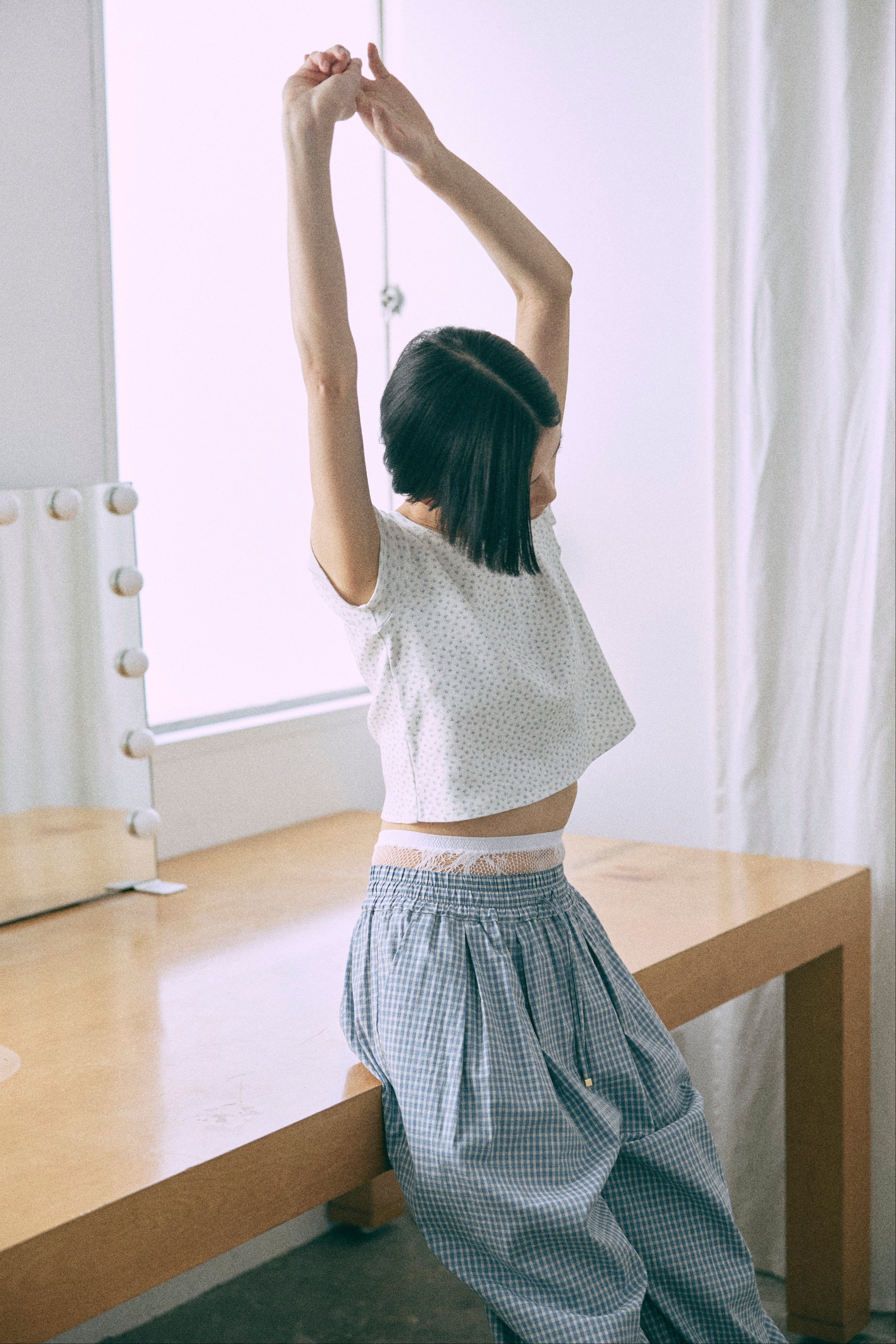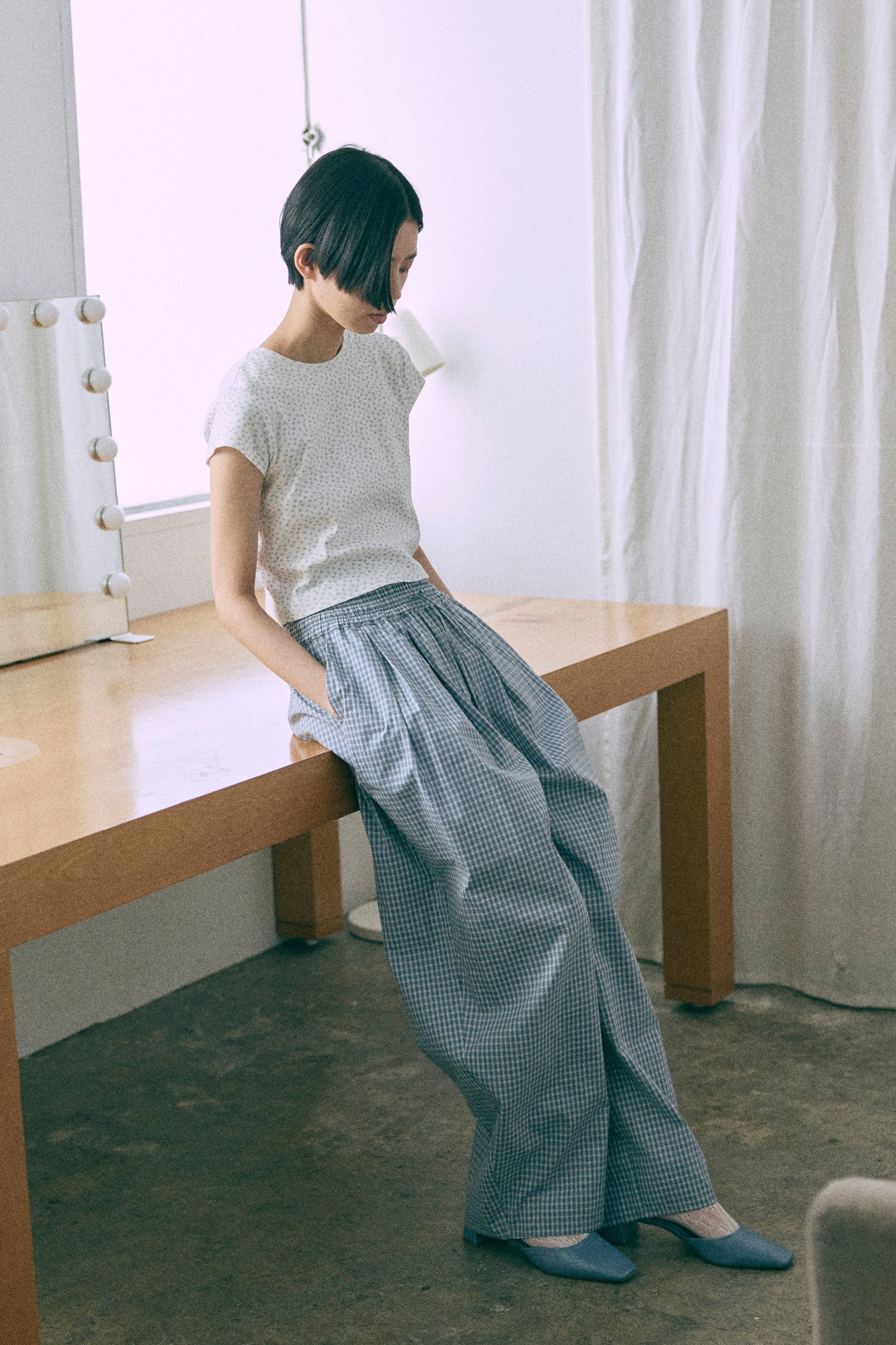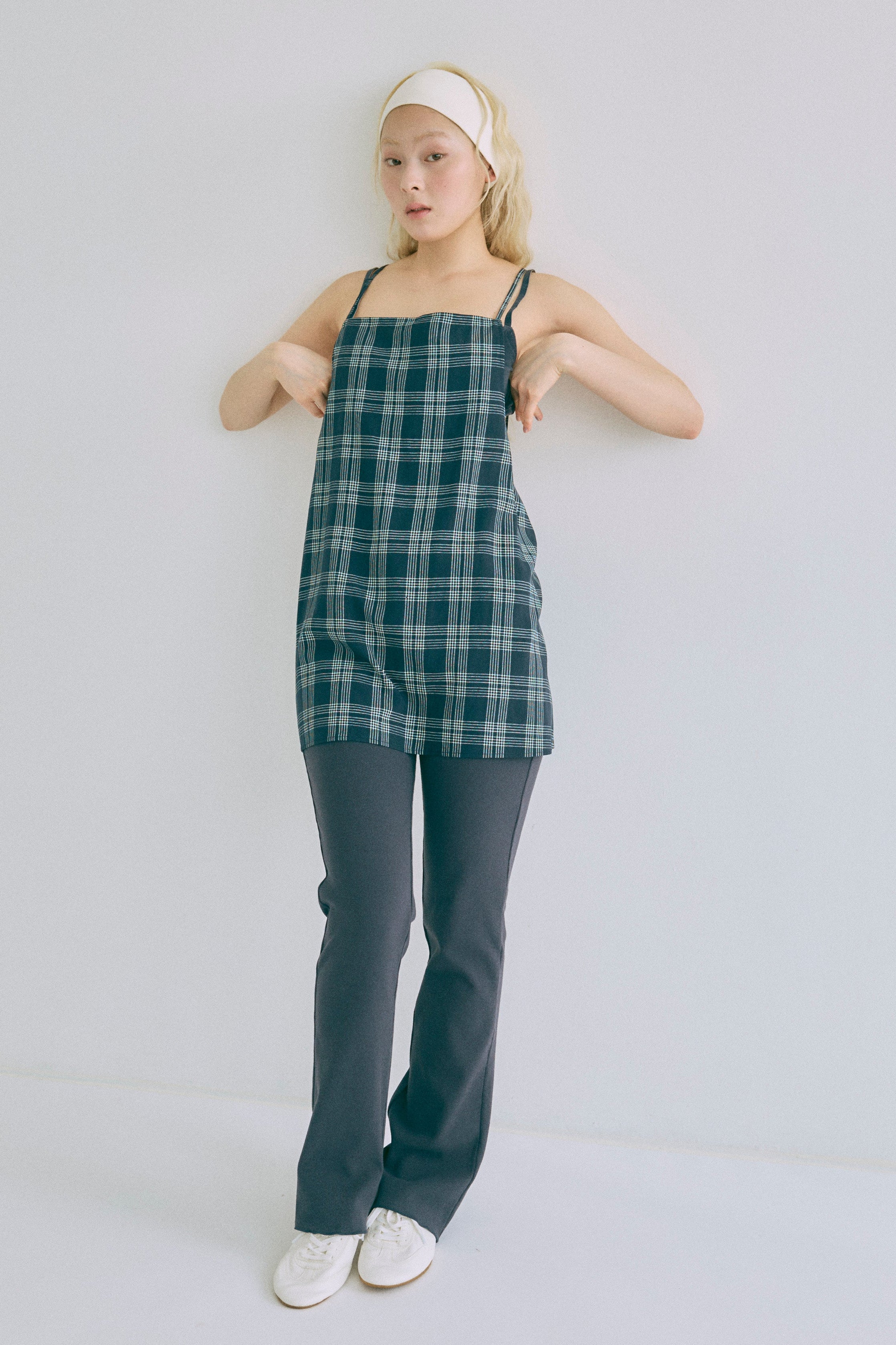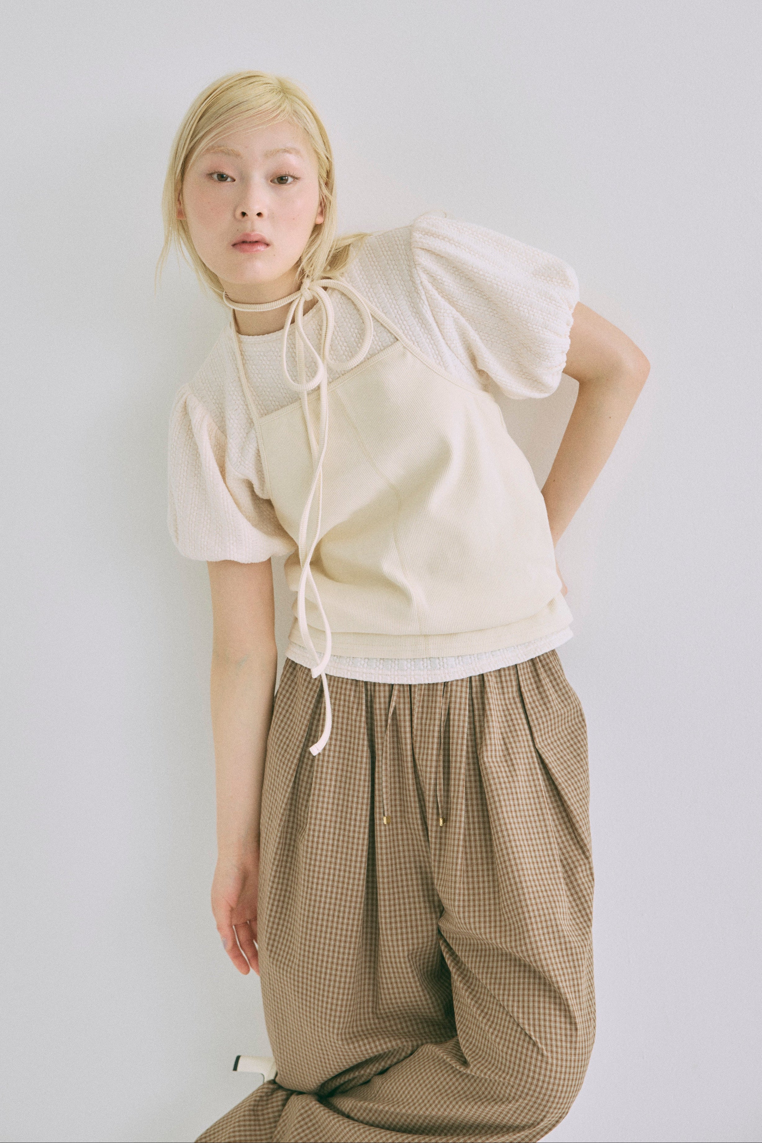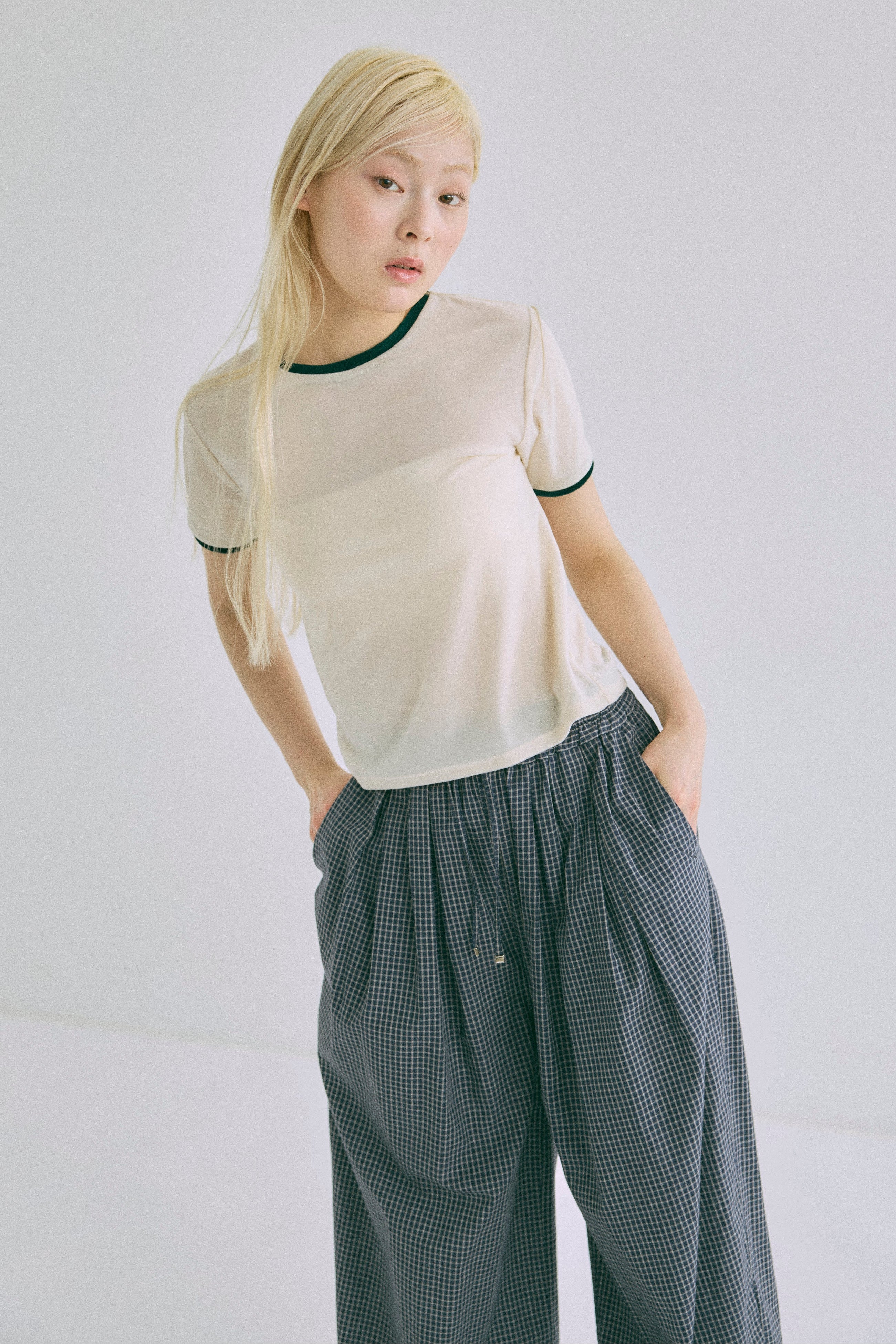 Airy Check Tuck Easy-Pants
