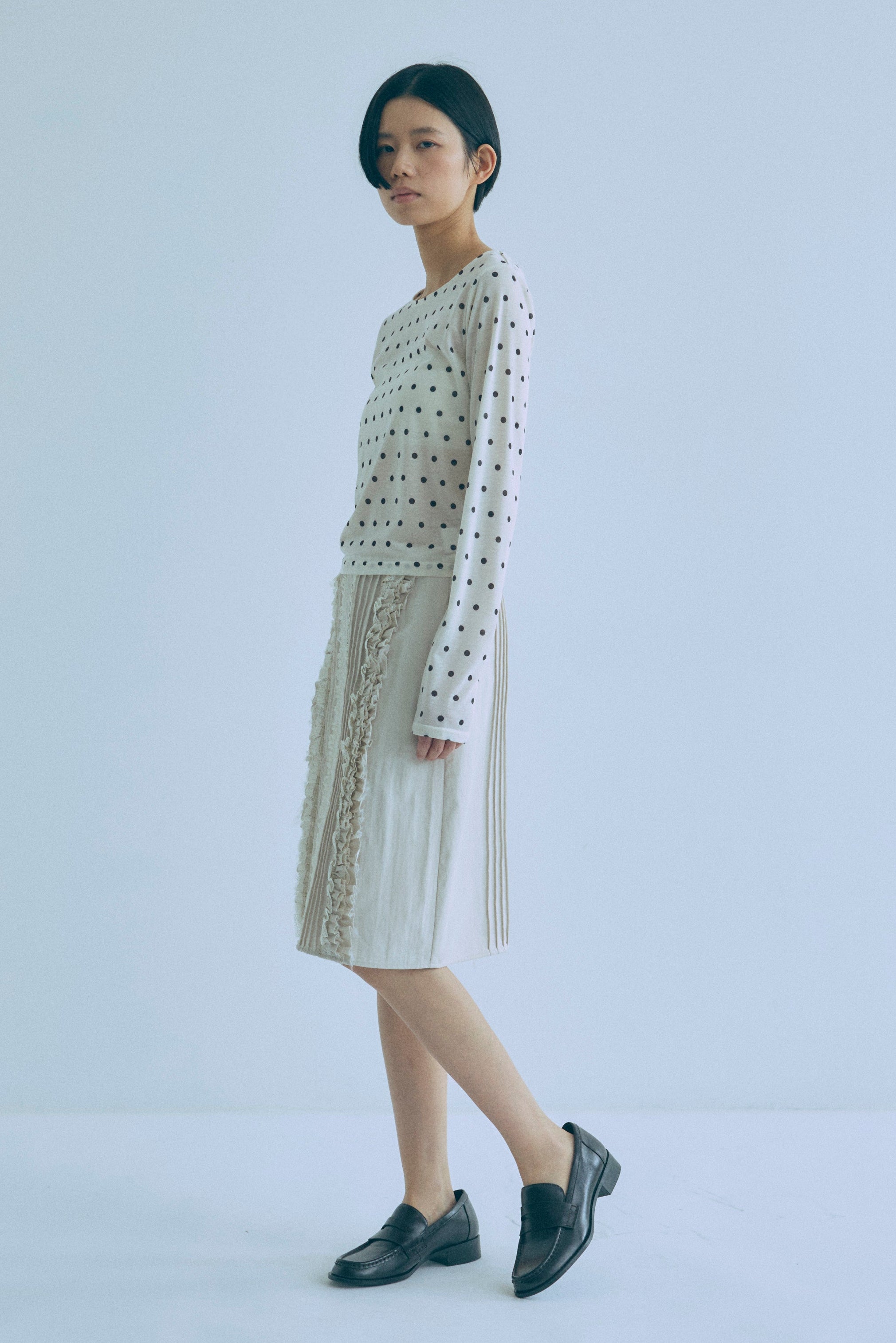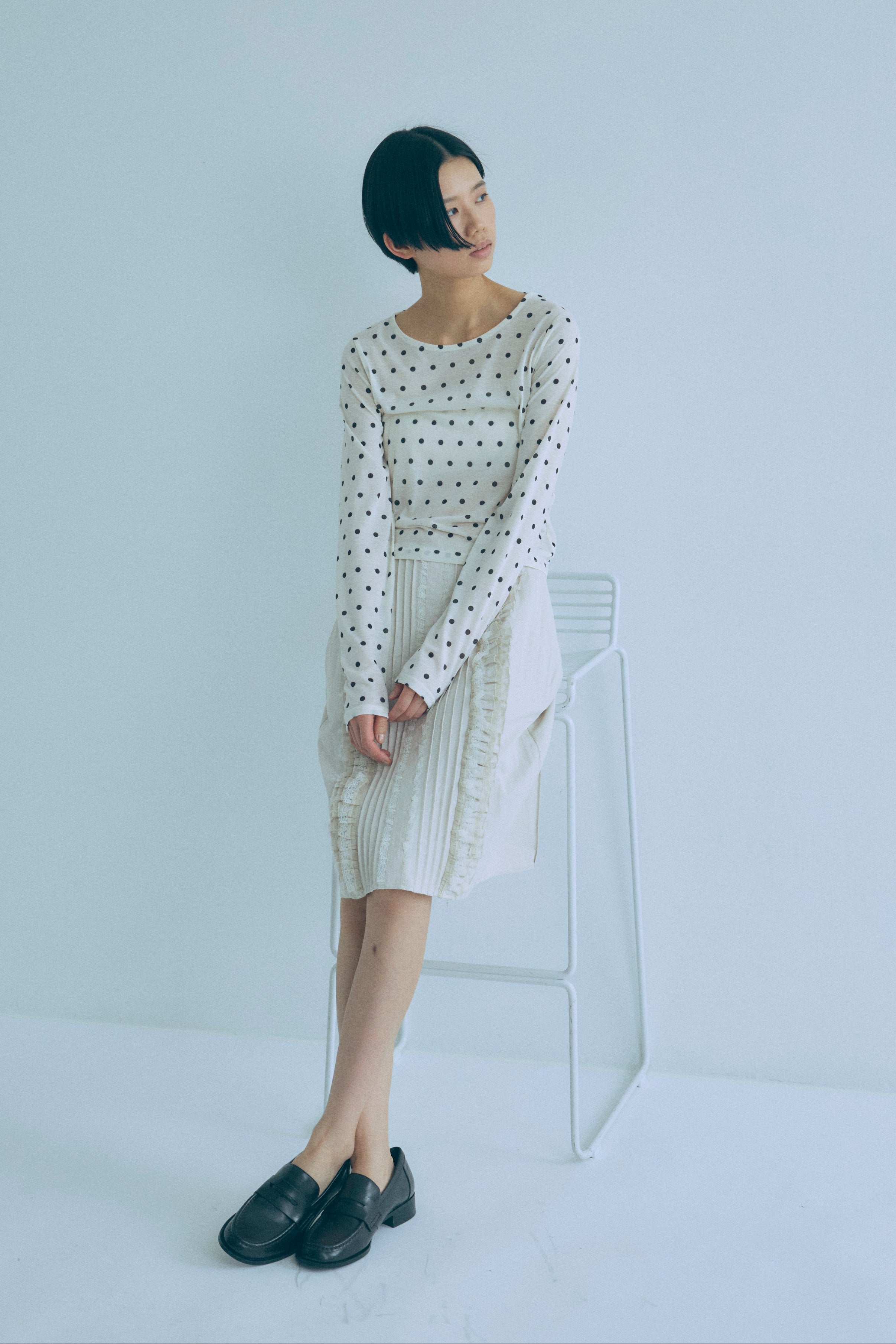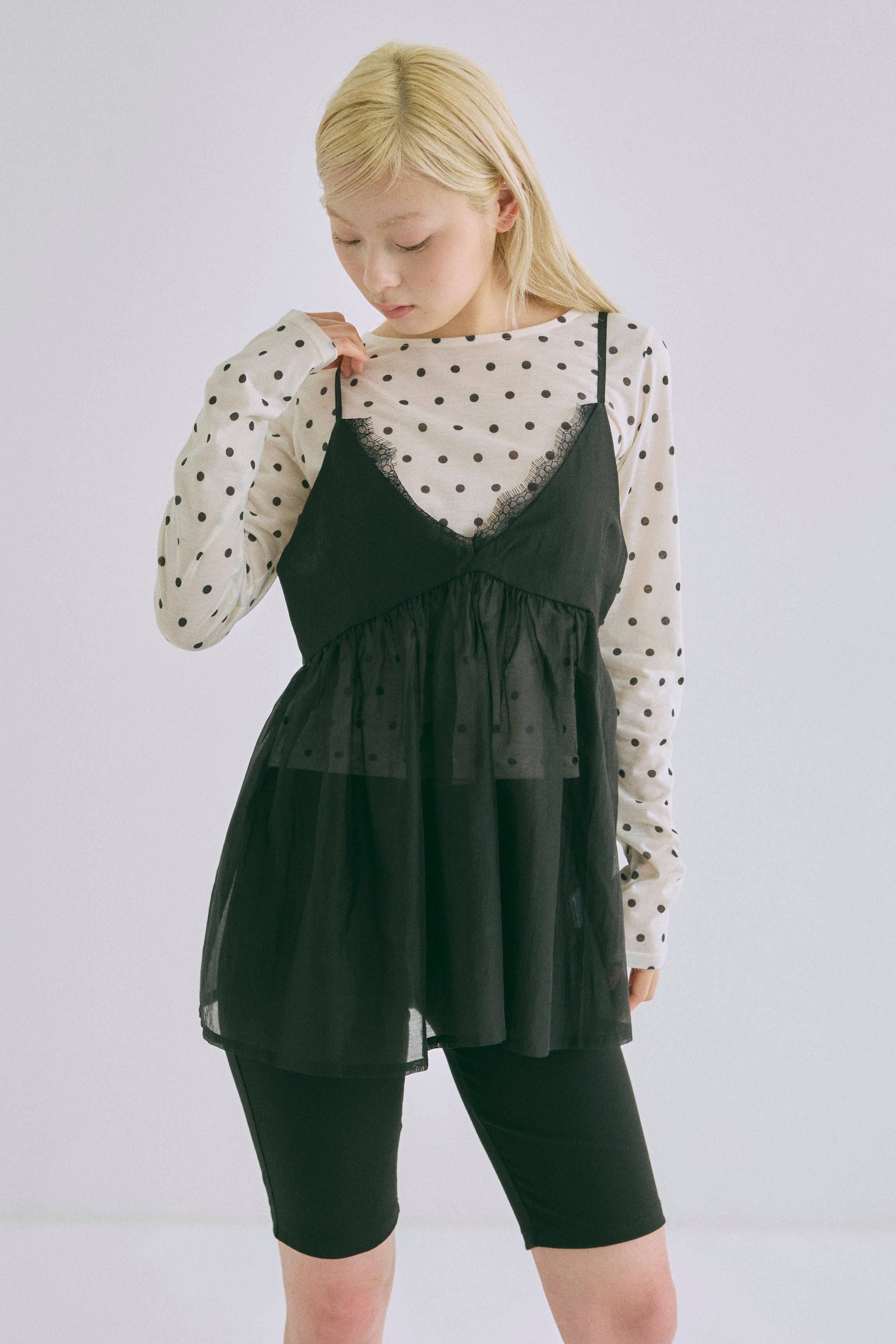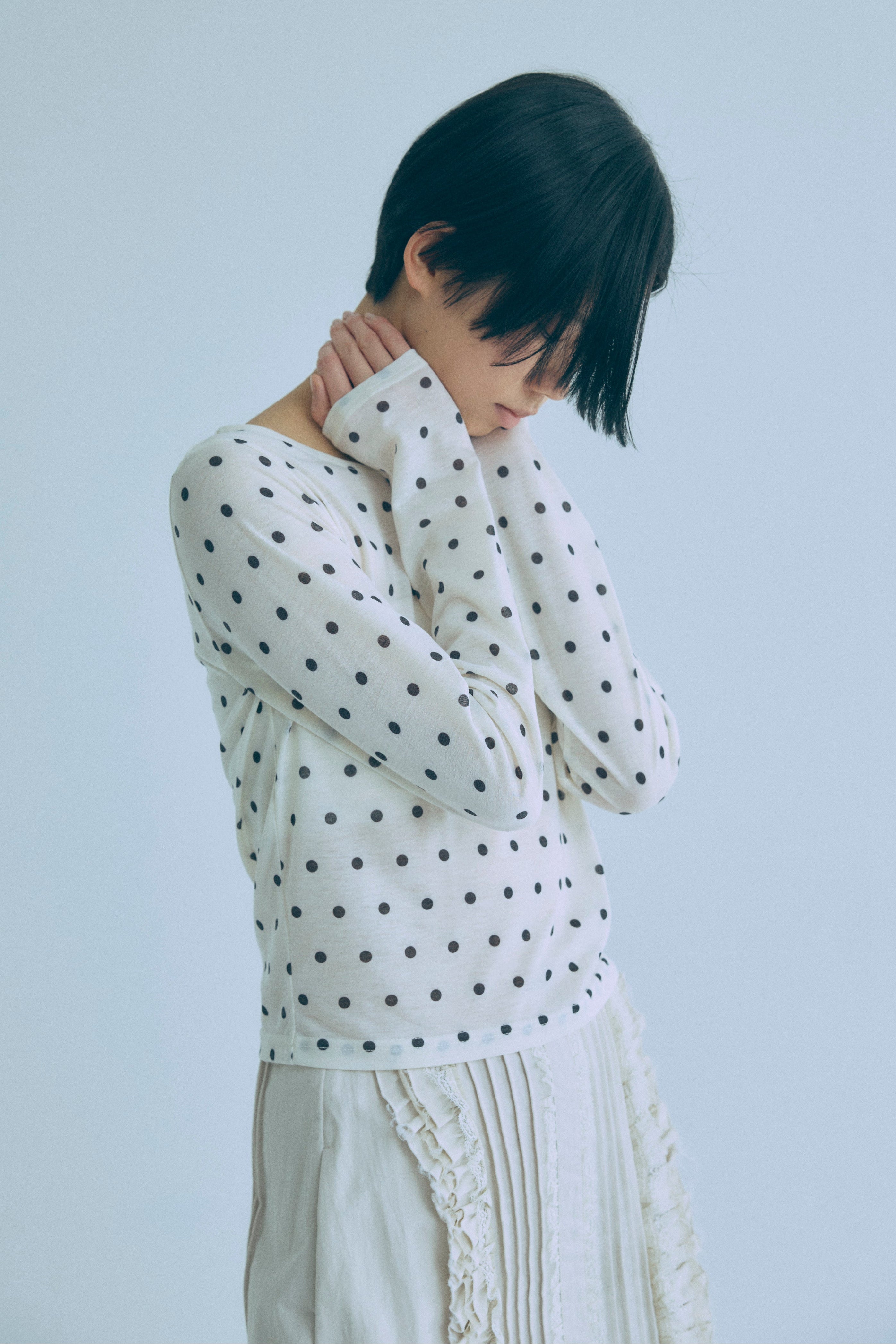 Sheer Dotted Crewneck Long Tee