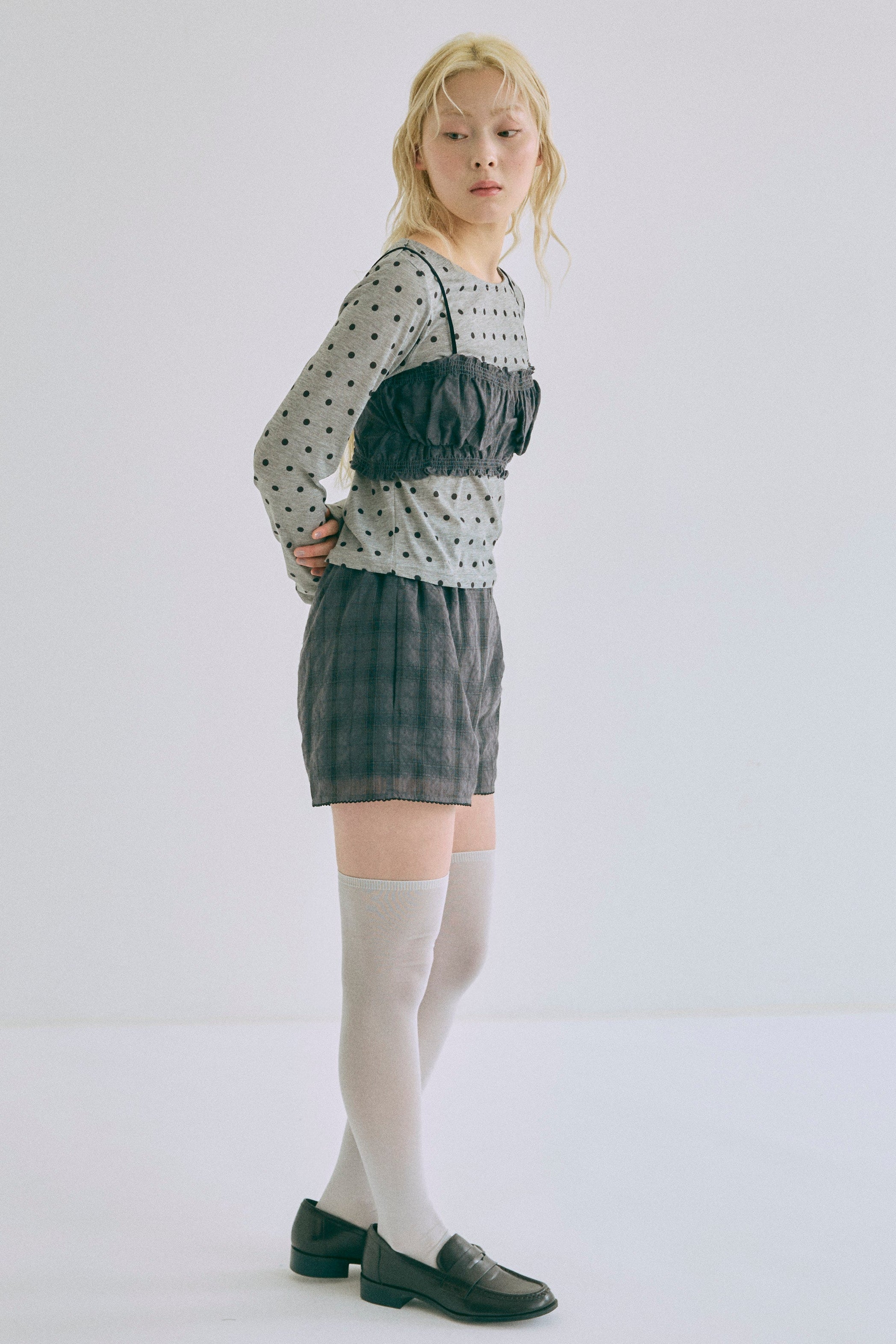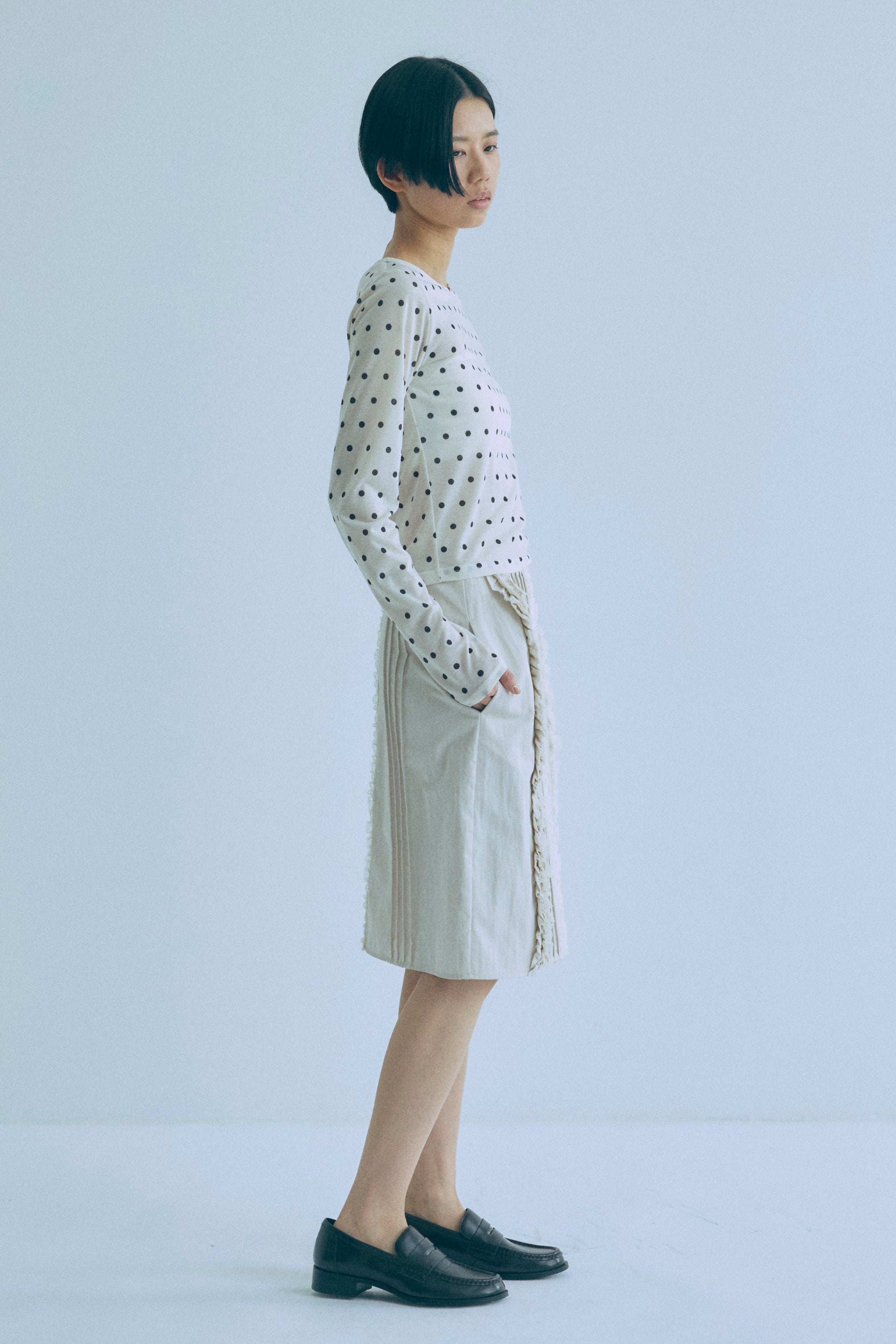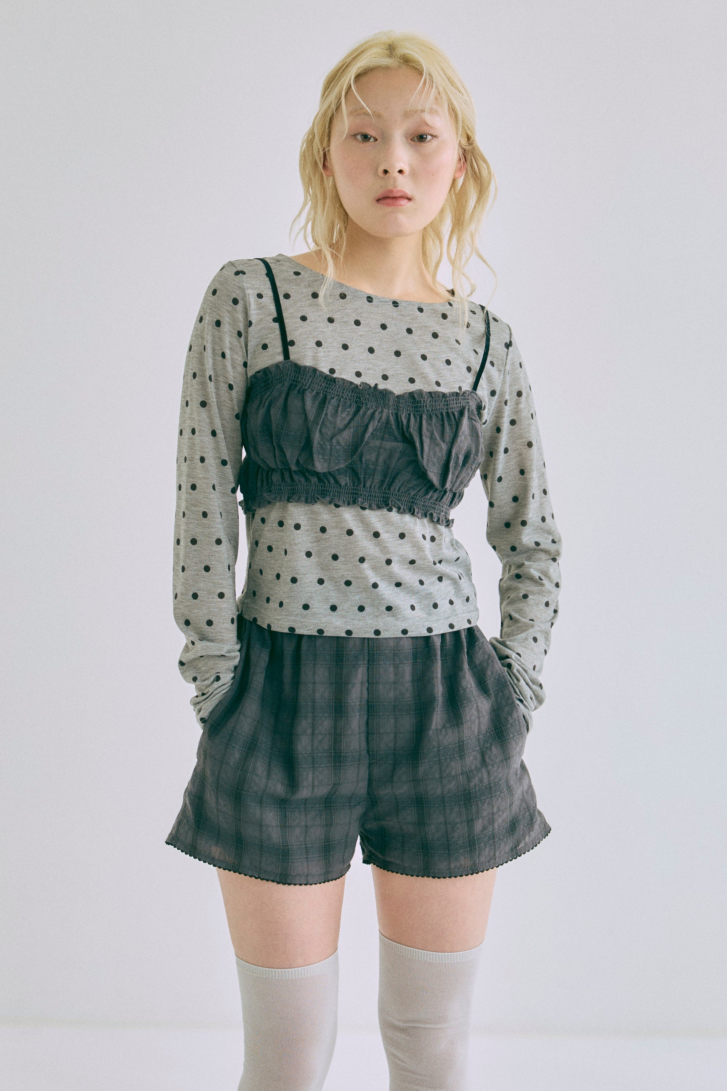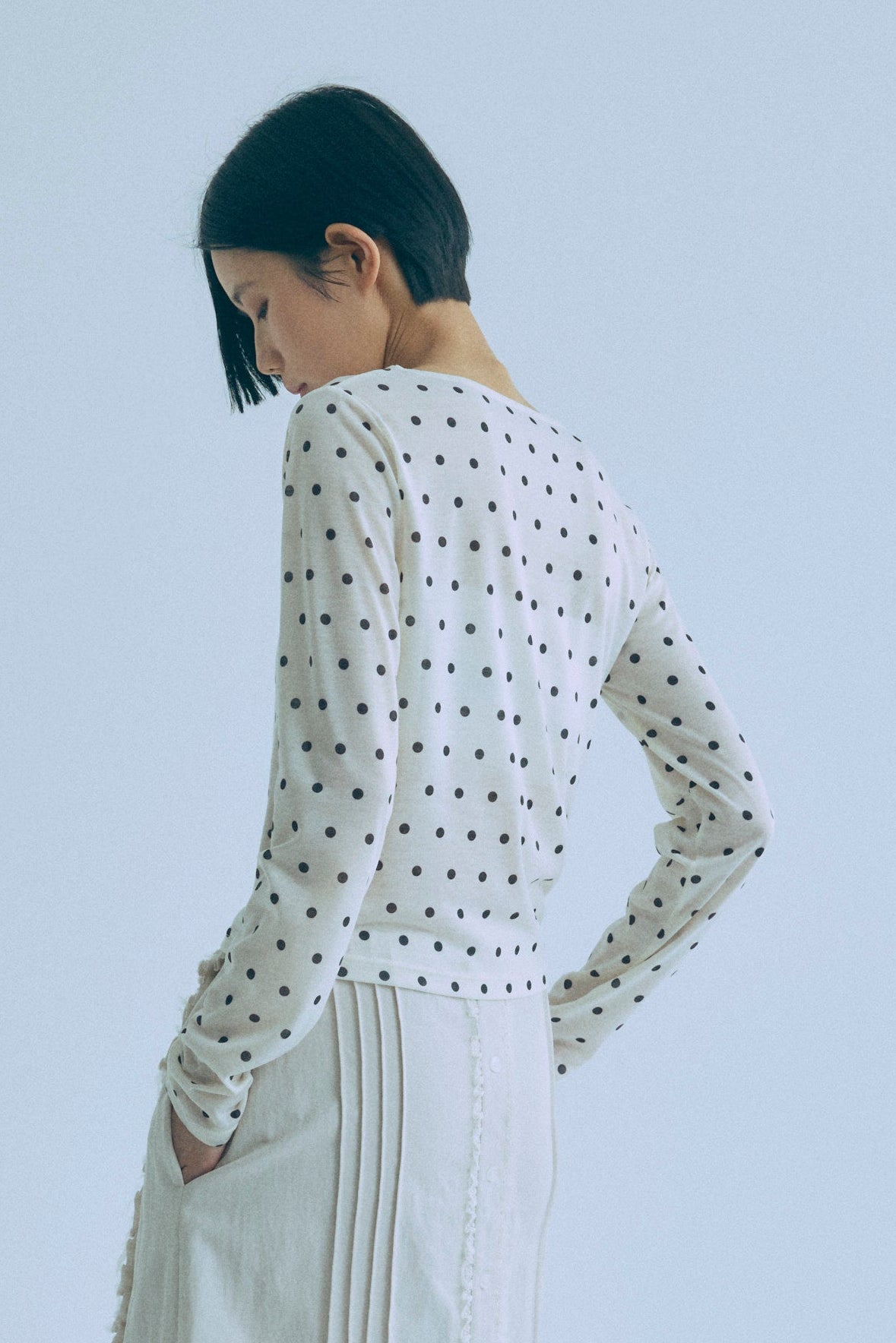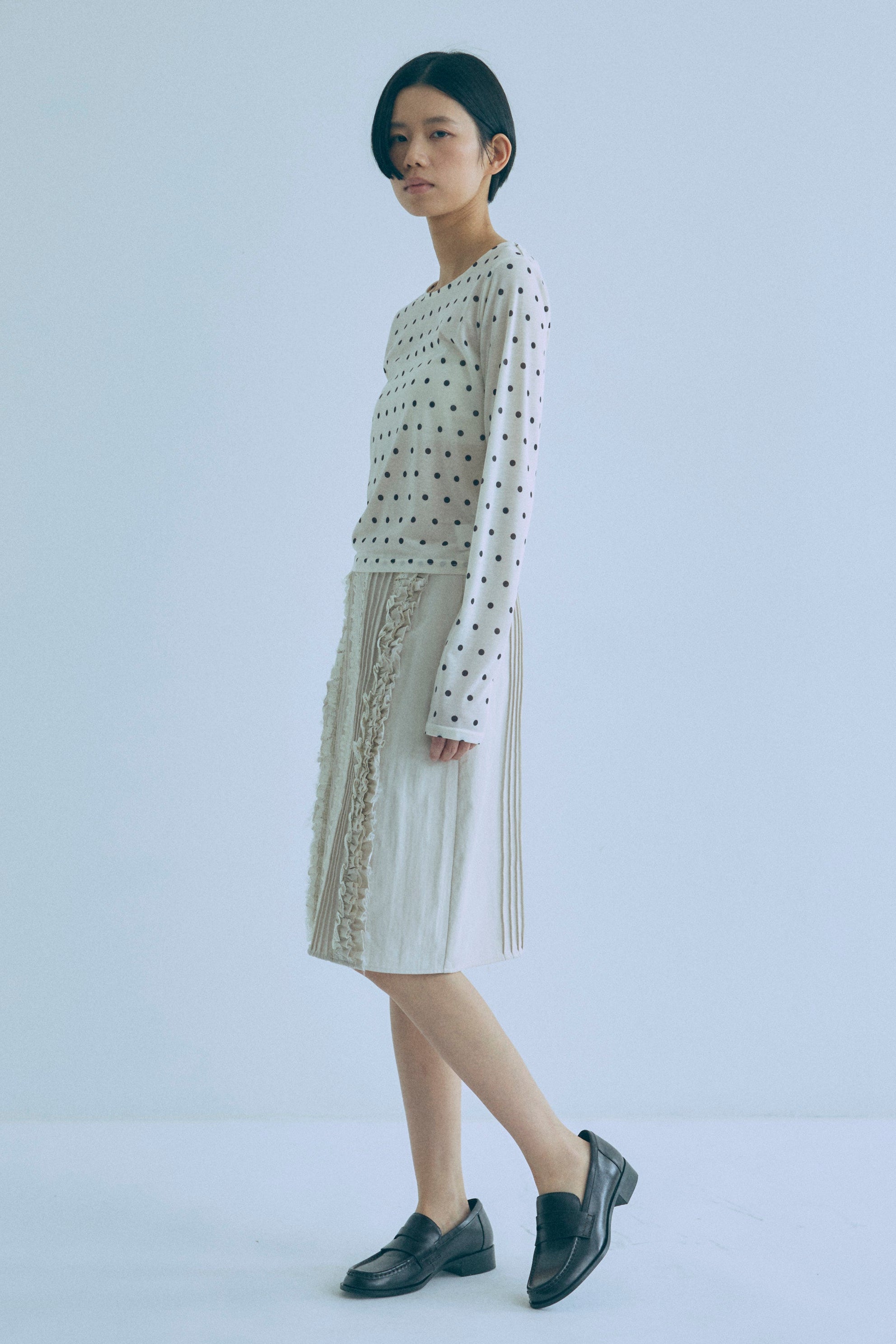 Sheer Dotted Crewneck Long Tee