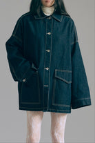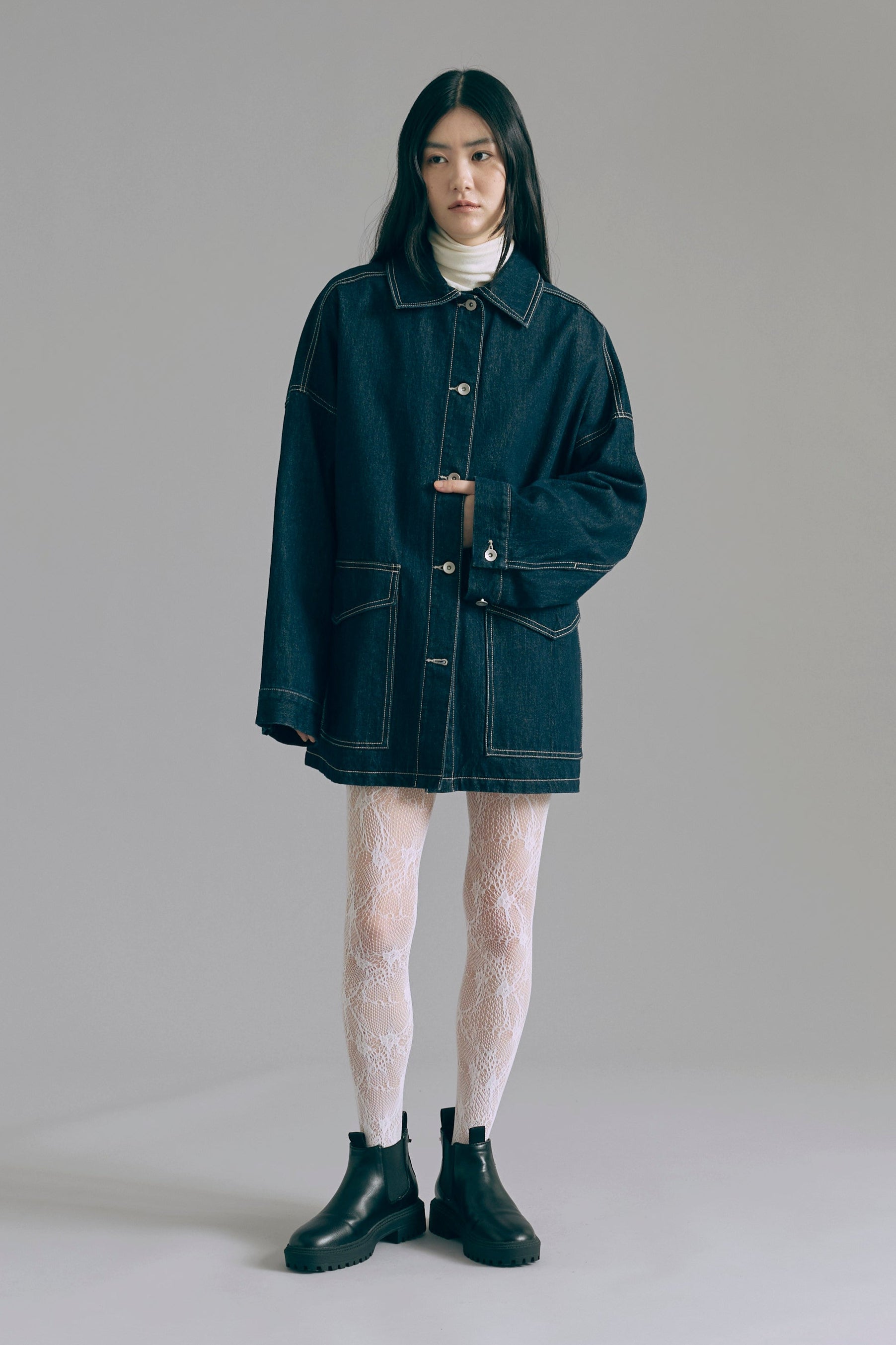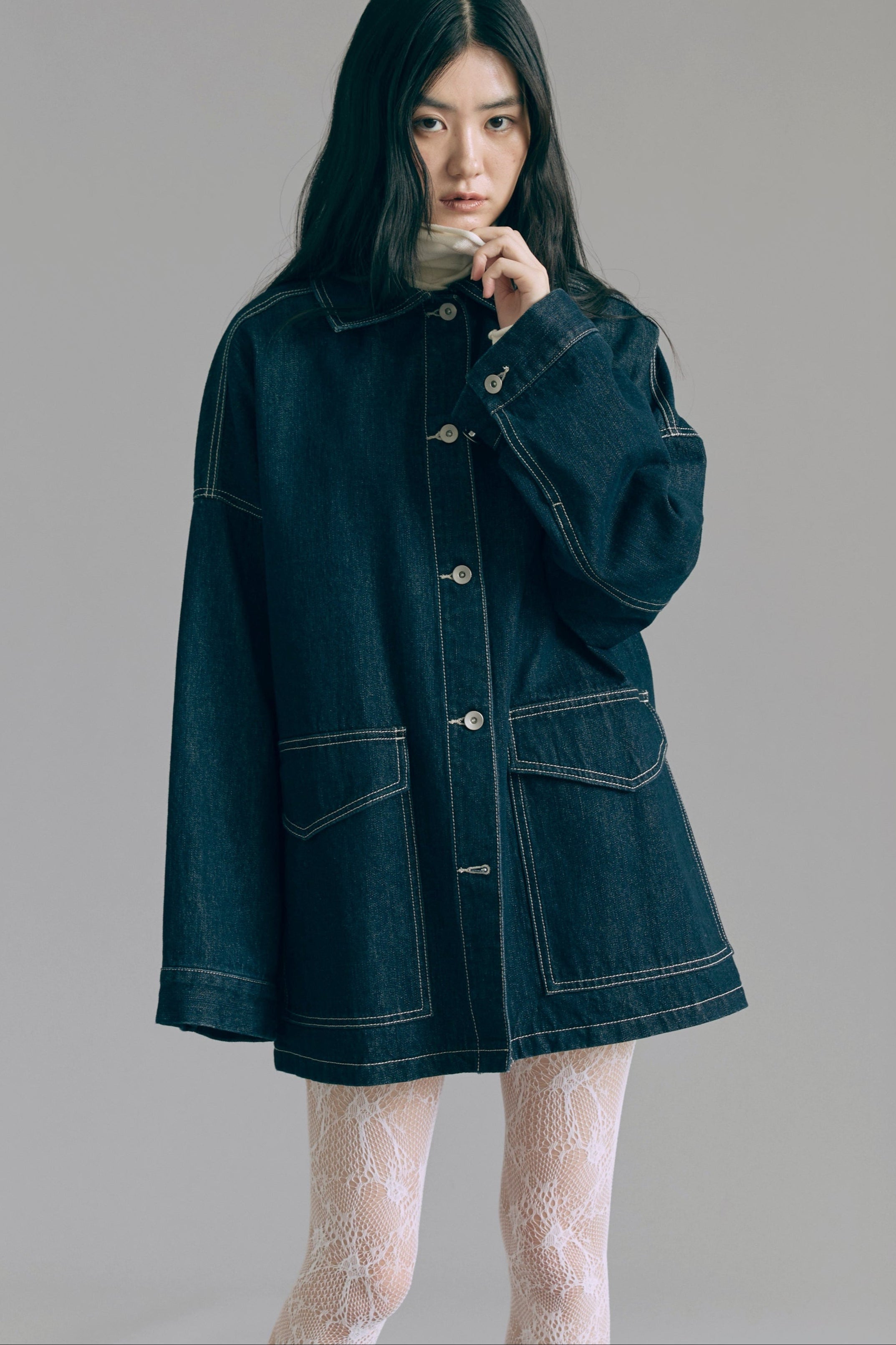 メンズライクなカバーオール オーバーサイズデニムジャケット 【Material】 13オンスの比較的厚手でしっかりとしたデニム地を使用。耐久性に優れ、長期間の着用にも耐えられる厚みでありながら、重すぎず日常的に着用しやすい素材です。 この厚みは型崩れしにくく、しっかりとしたシルエットを保ちます。そのため、体型に合わせた適度なフィット感が得られます 【Design】 メンズライクな印象を持たせたオーバーサイズのデニムジャケット。全体的にゆったりとしたシルエットで、カジュアルに着こなせる一着です。 【Styling point】 同素材のRigid Curve Denimとセットアップでの着用はもちろん、Tシャツやニットとのコーディネートもおすすめ。リラックス感とスタイルアップを両立させたサイズ感が魅力です。 ◇同素材で下記ご用意しております。 Rigid Curve Denim(品番:93007)