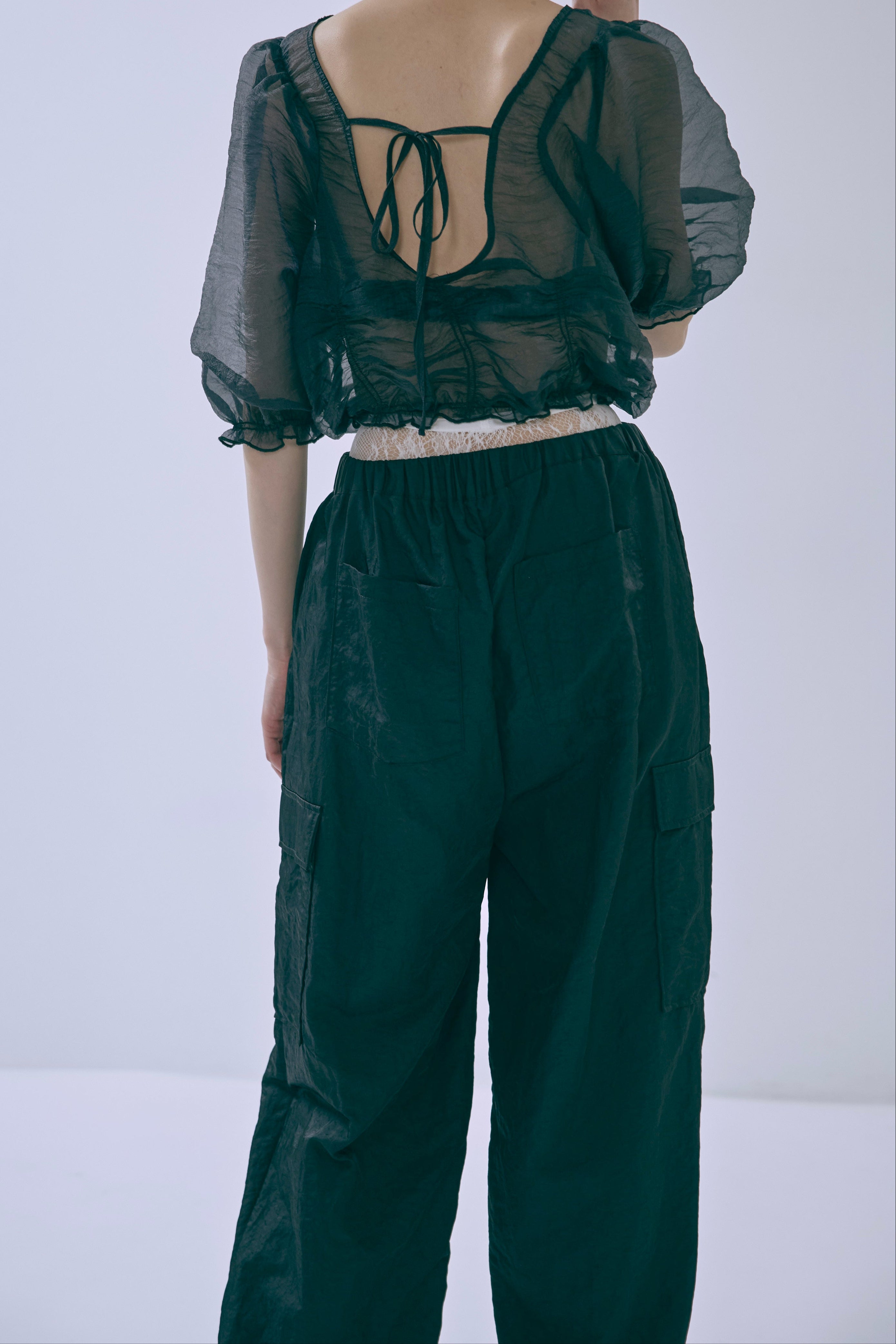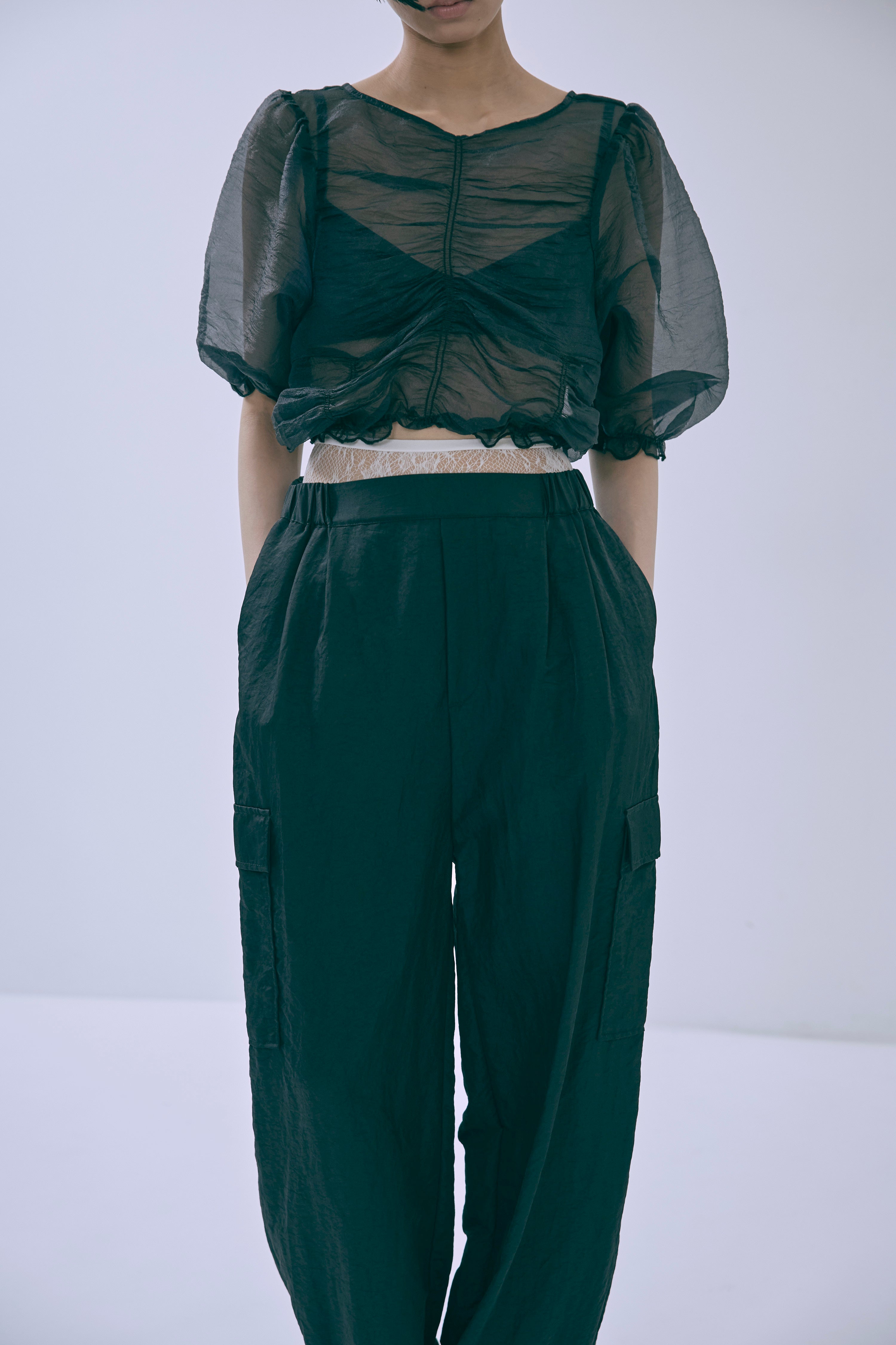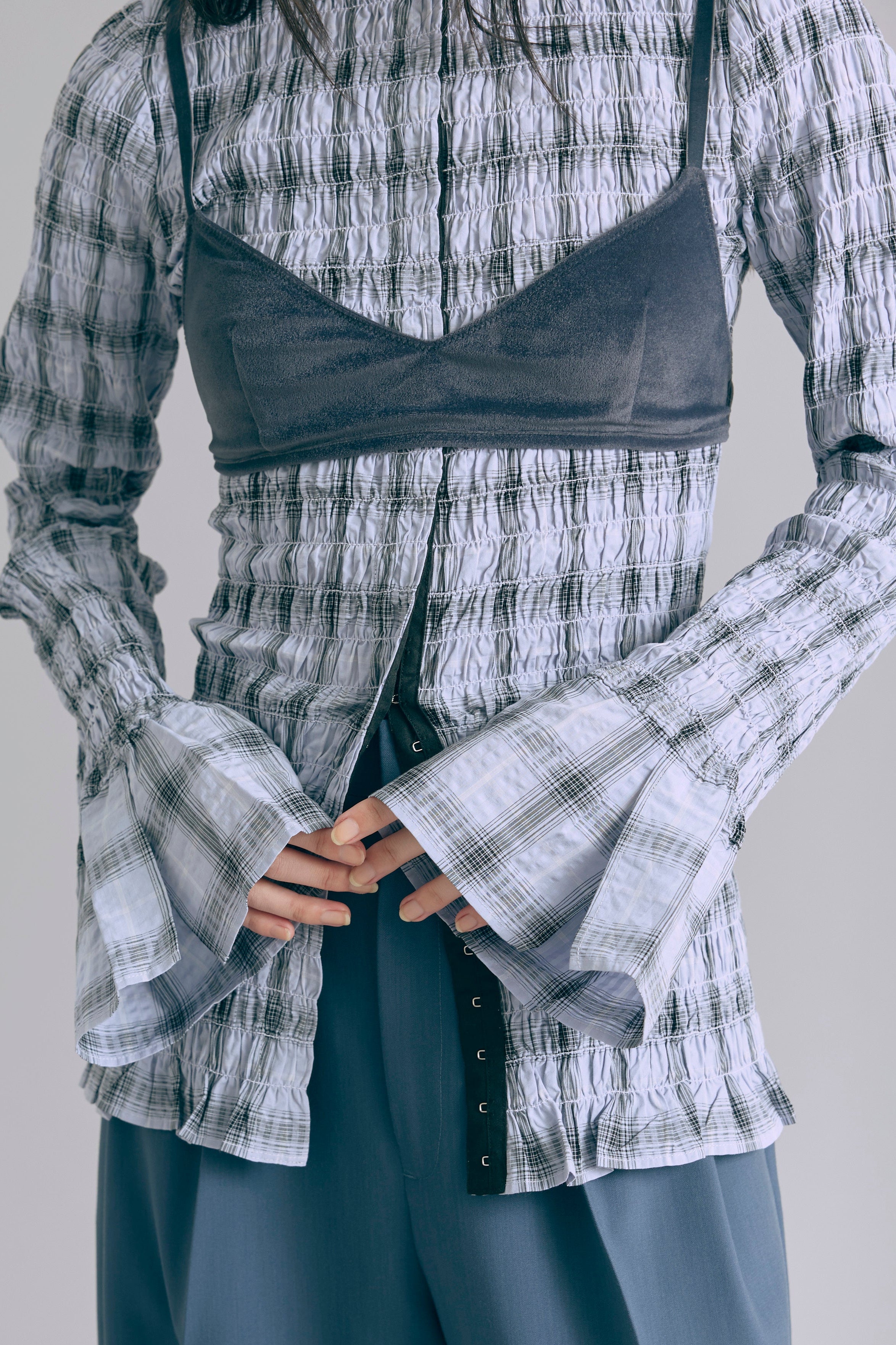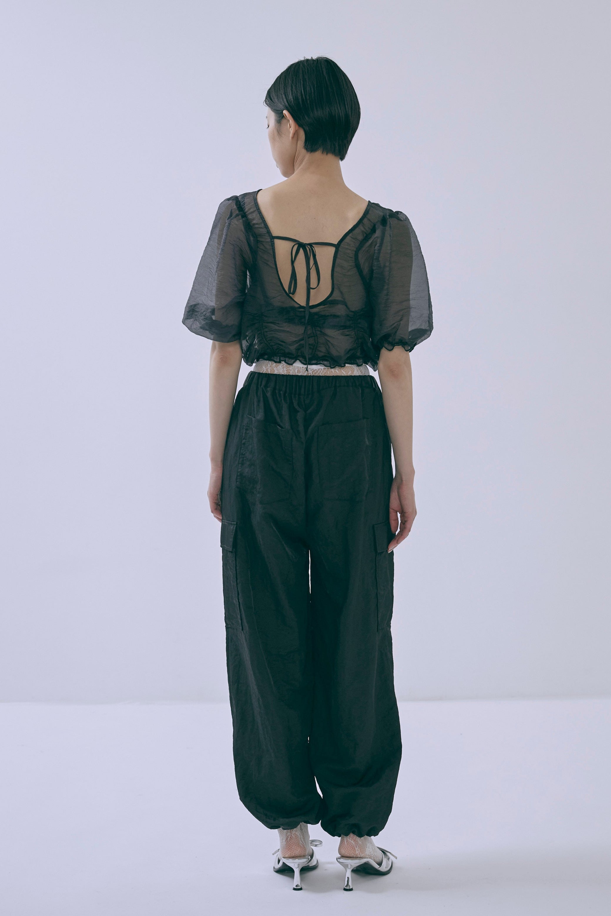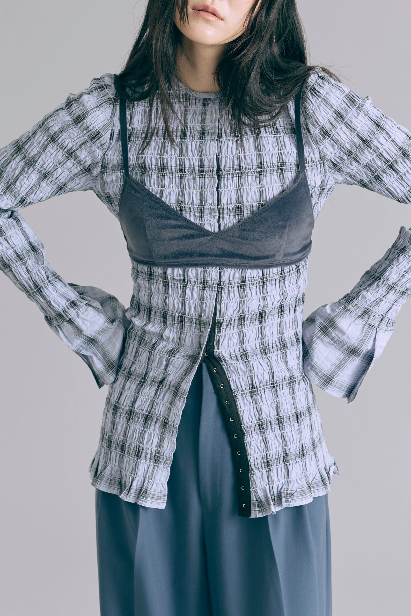 ふわっと起毛感のあるスノーカットドットの表面感は着るだけで着映えする、華やかなチュニックブラウス シアードットチュニック 【Material】 ふわふわと立体的なドットカットジャガードが特徴的なジョーゼット生地。 【Design】 チュニック丈の着丈とワイドな袖口が、ラフな雰囲気のある一着。 深めに入った身頃のスリットは前後2WAYでも着用可能です。 袖口と裾の裏側にはサテンの見返しを効かせ、細かい部分にもこだわったデザイン。 【Styling point】 ゆるめのパンツやスラックスなどと合わせてラフにシンプルな着こなしがおすすめです。