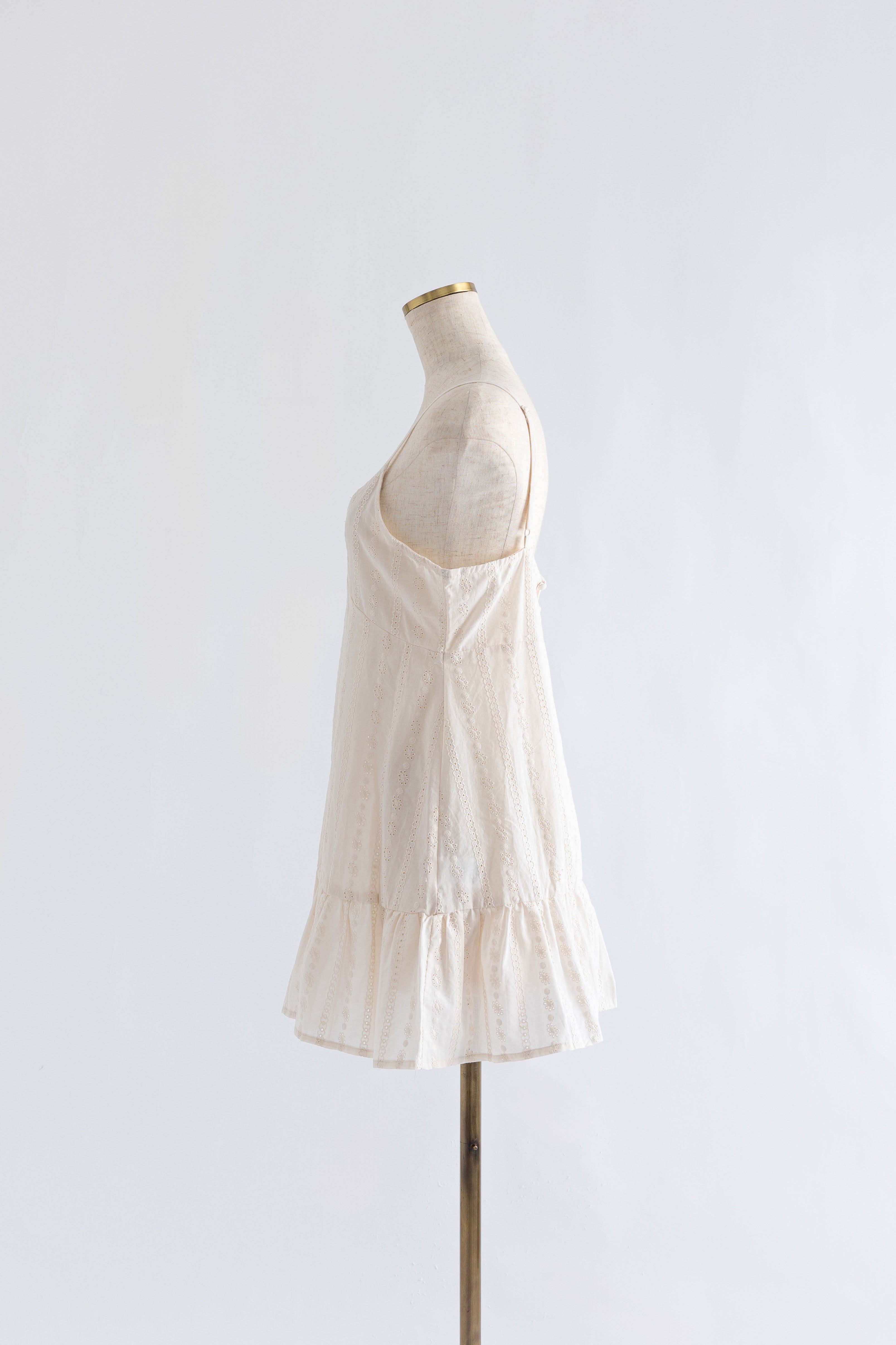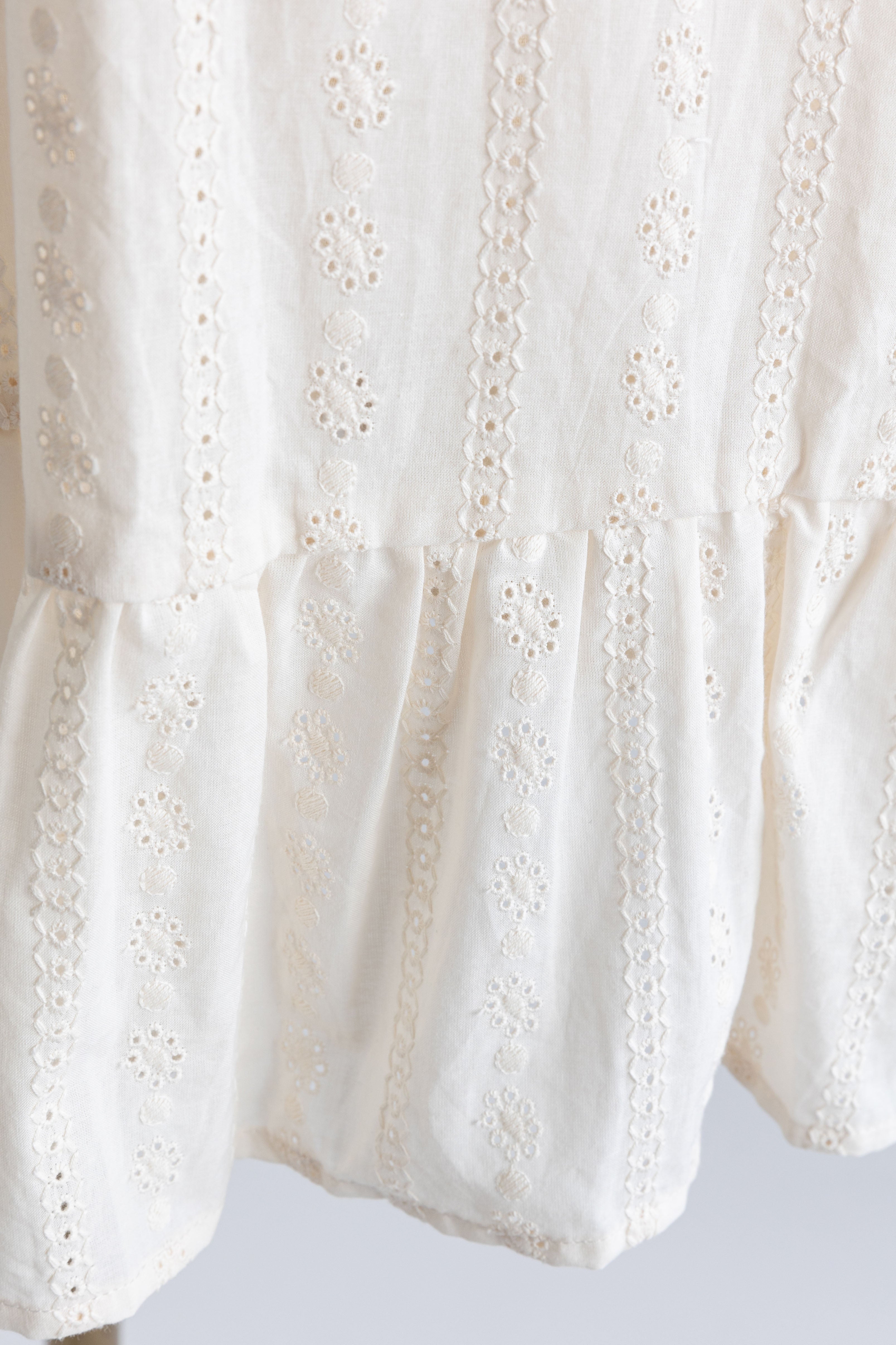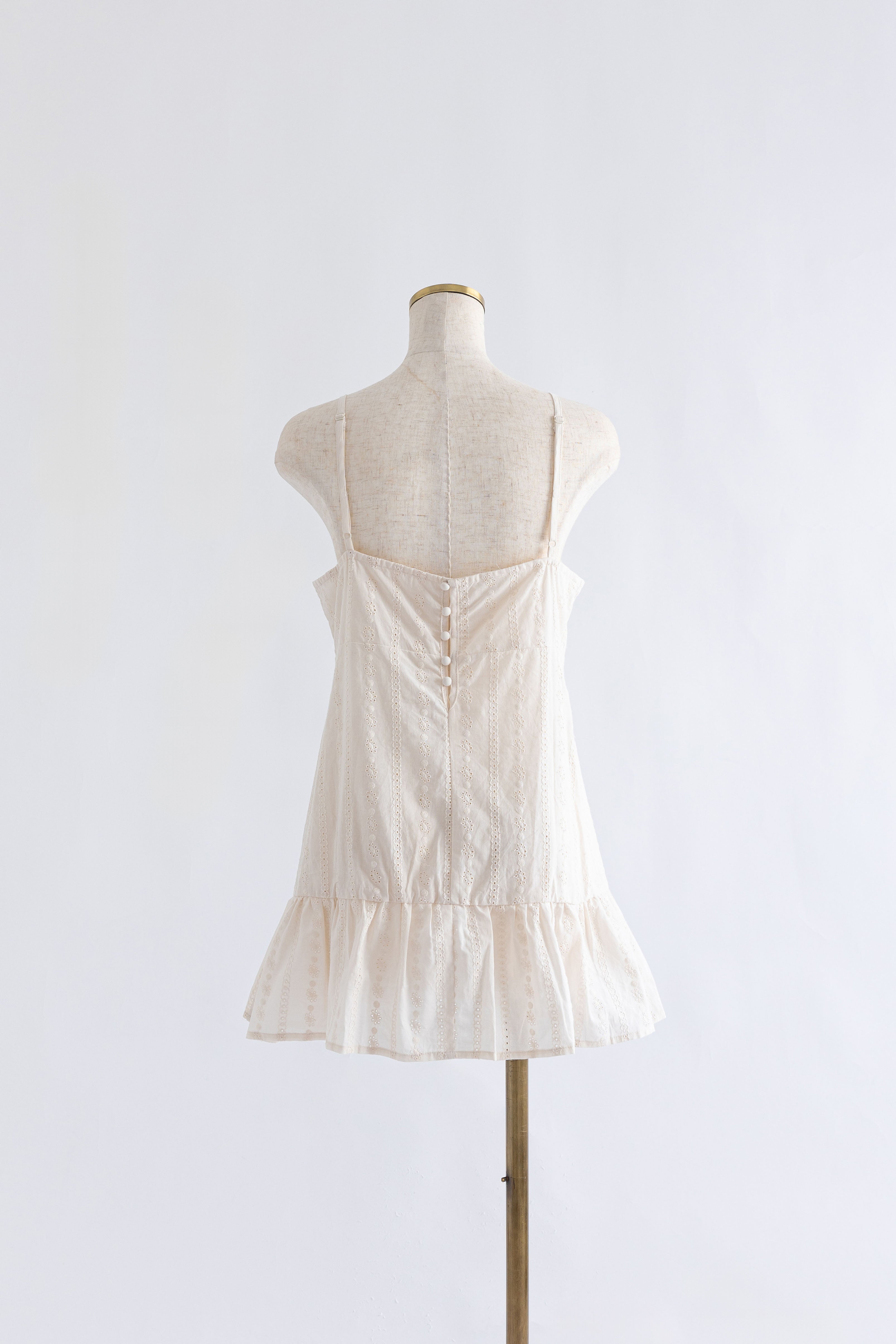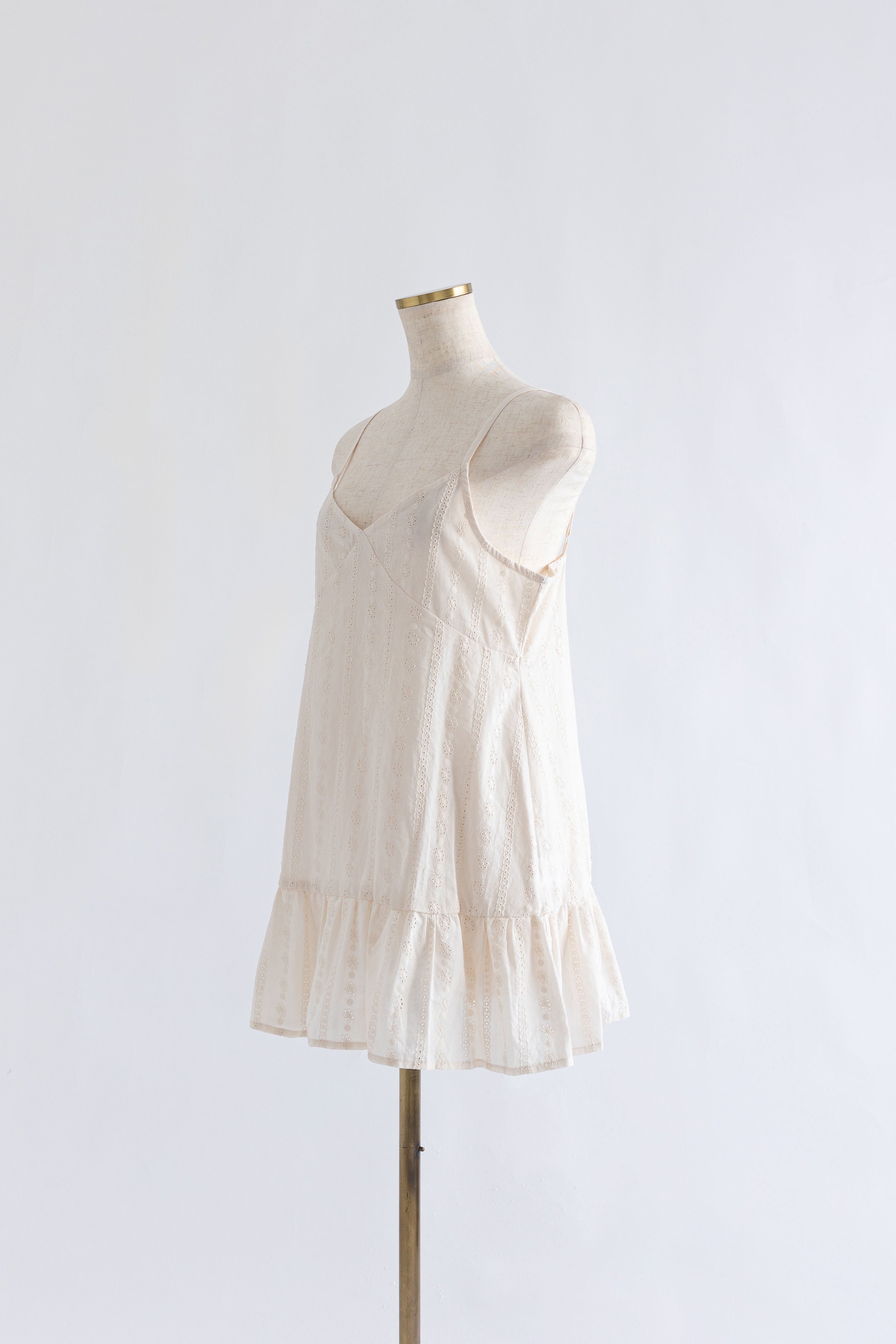 懐かしさを纏う、ヴィンテージレース風のレイヤードチュニック 【Material】 繊細な透け感と柔らかな肌ざわり。ほんのりくすんだ風合いがヴィンテージライクなムードを演出。レースの表情が暑い季節にぴったりです。 【Design】 長め丈のキャミチュニックは、重ね着を前提にデザインされた一枚。 クラシカルな雰囲気がありながら、どこか今っぽい抜け感も。ノスタルジーと洒落感があわさった、唯一無二の存在感です。 【Styling point】 Tシャツやタンクに重ねるだけで、コーデが一気にこなれた印象に。 肌寒い季節はジャケットやシャツを羽織って、通年で楽しめるのも嬉しいポイント。 カジュアルにもモードにも振れる、レイヤードの名脇役です。
