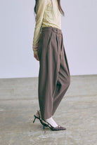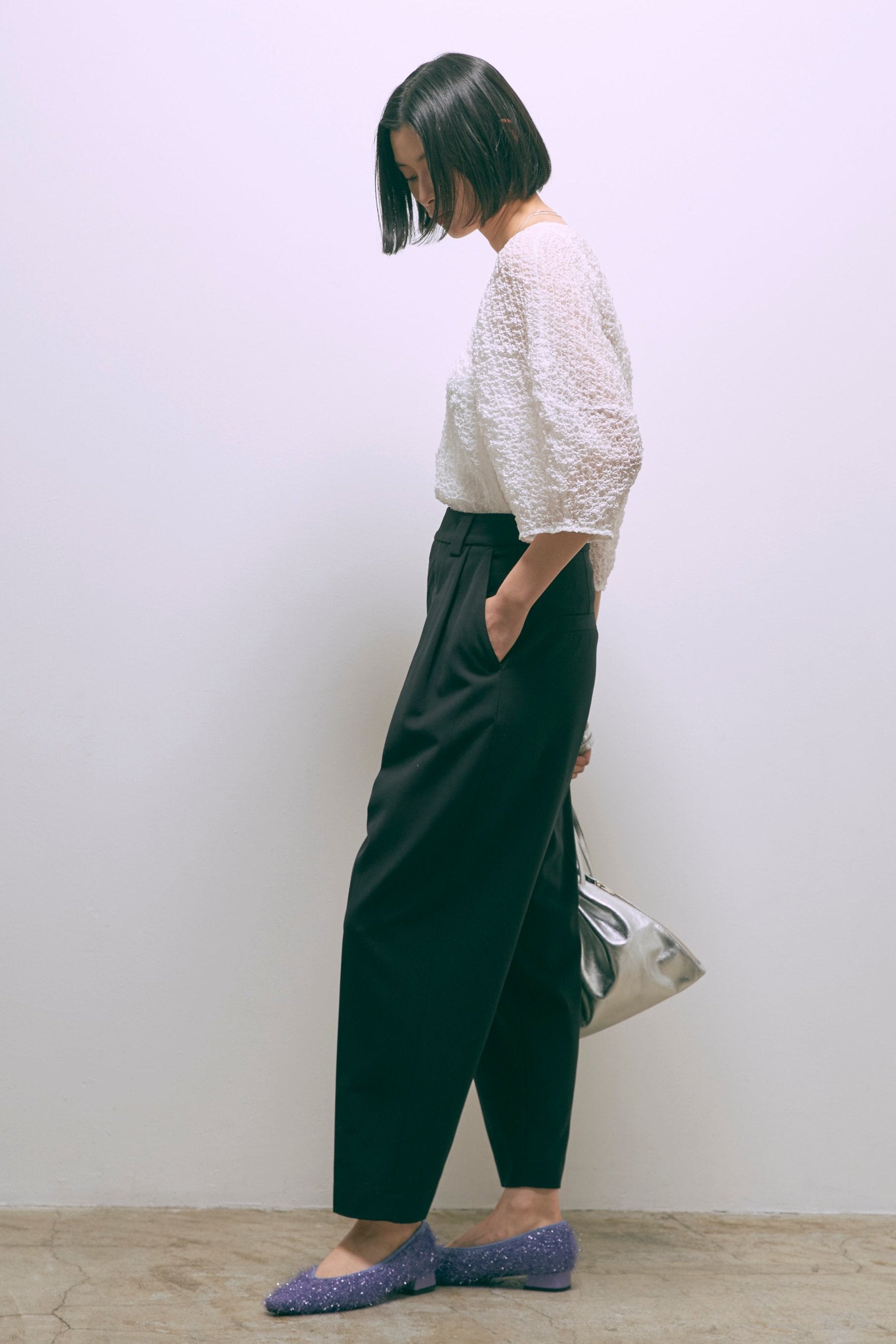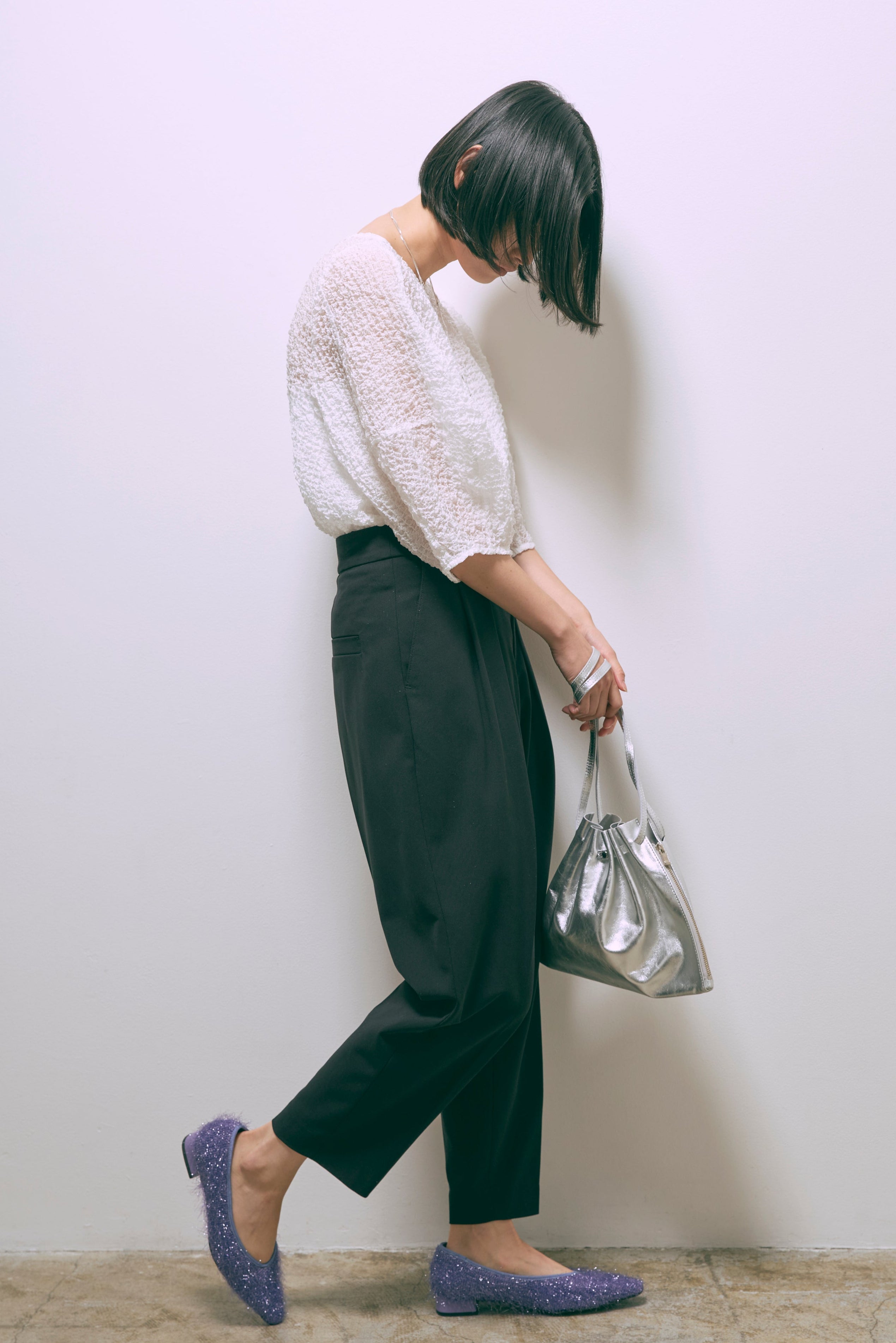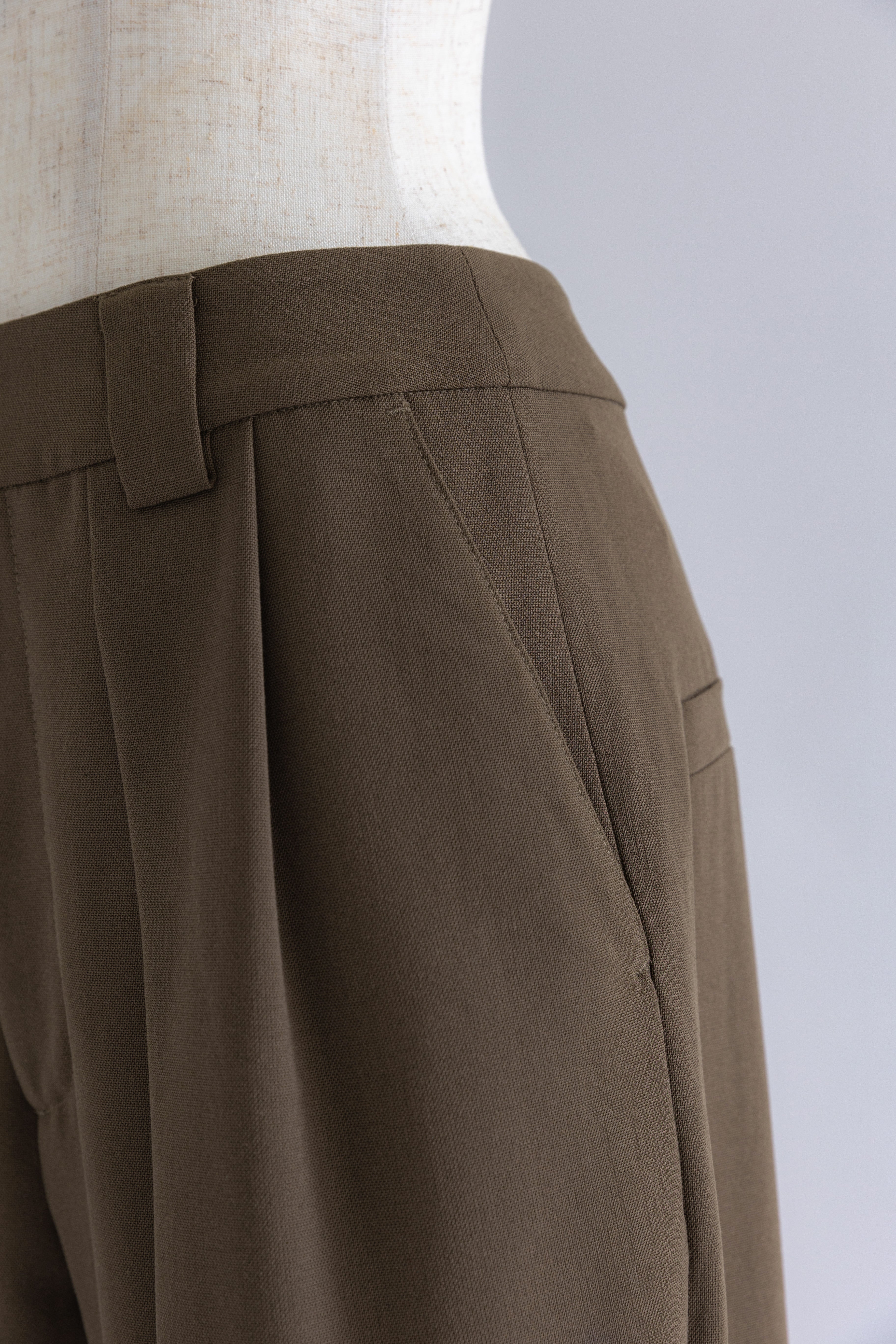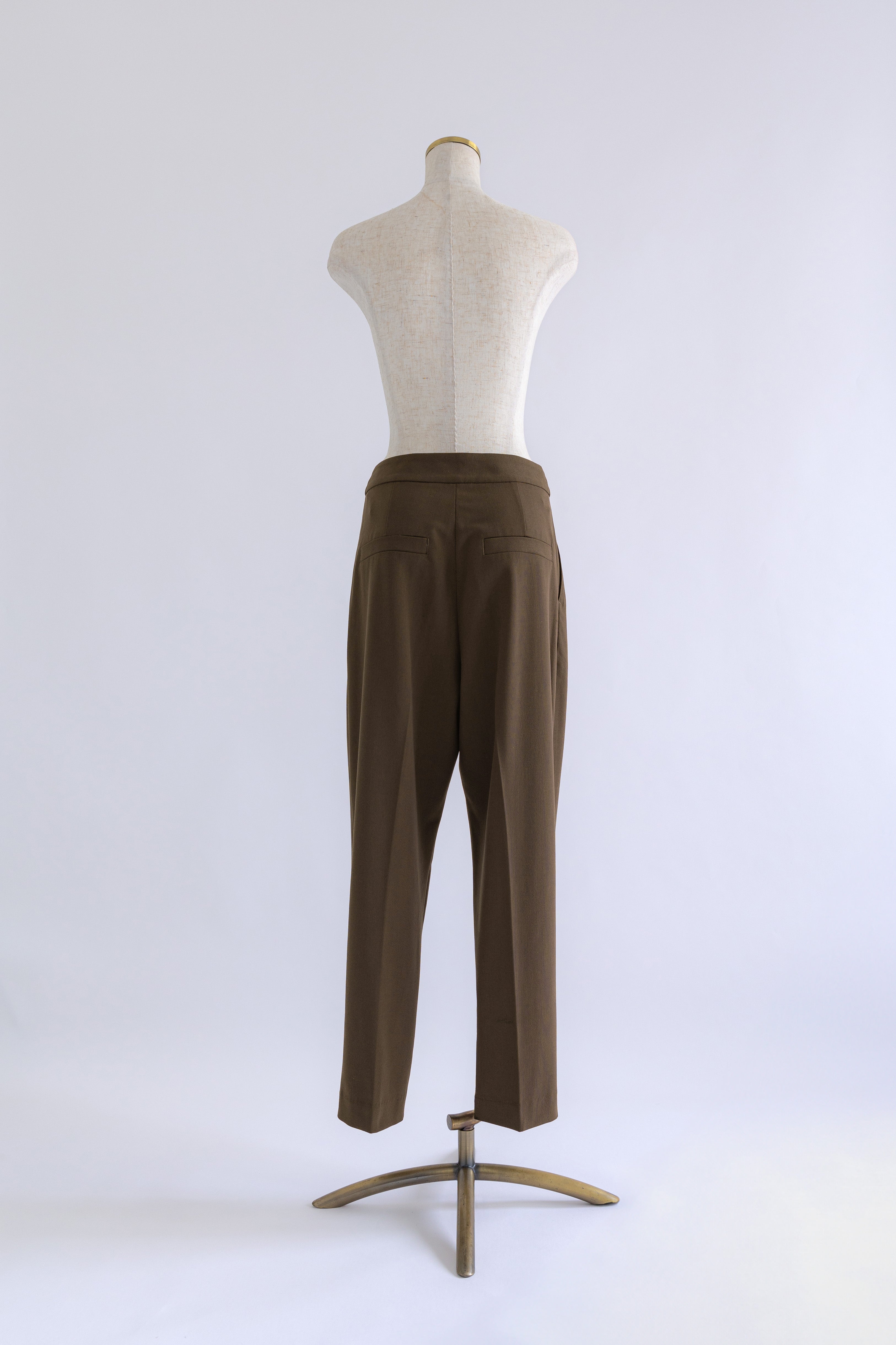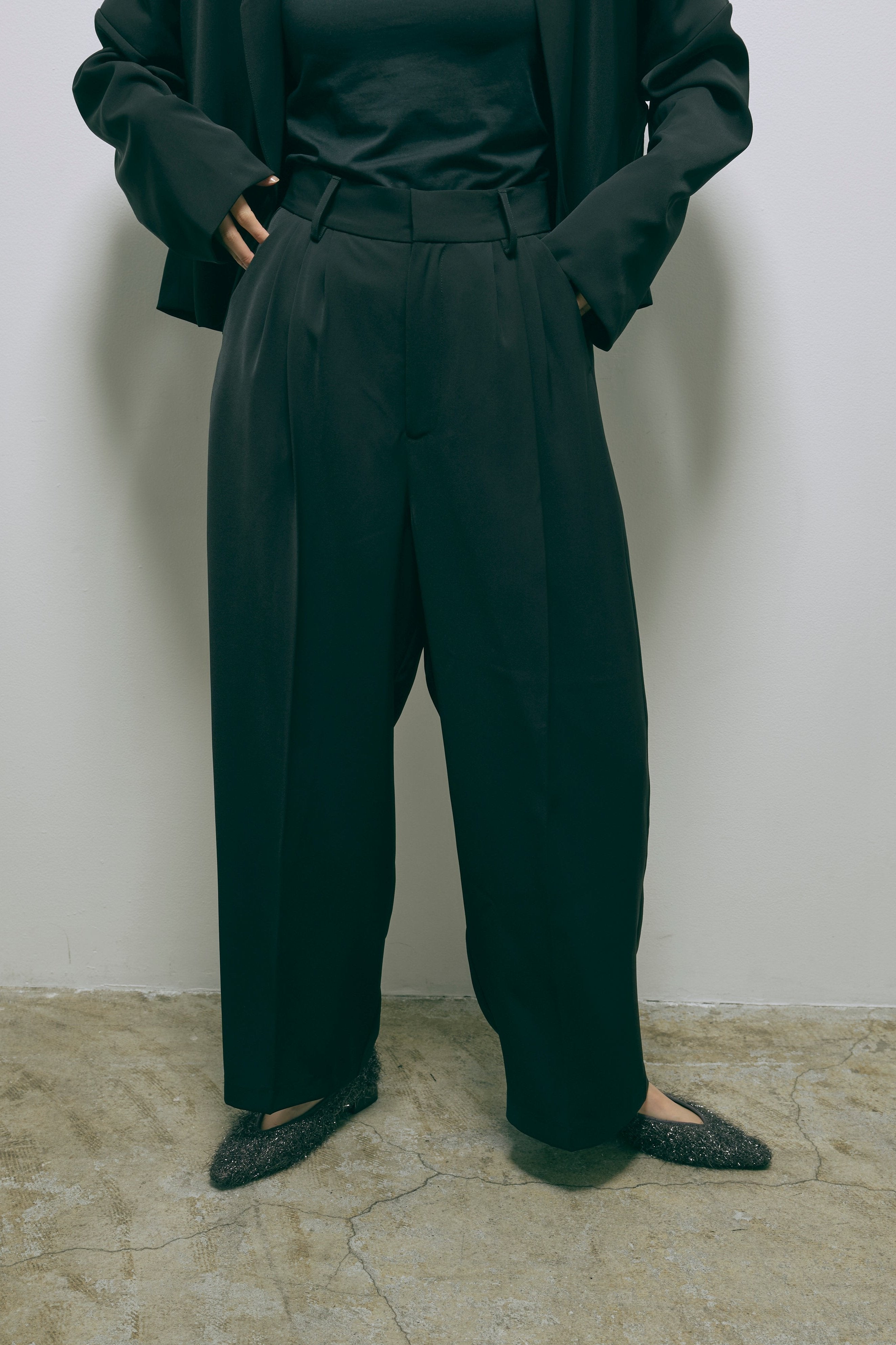 タック入りでリラックスしたシルエットが魅力。きれいめとリラクシー感を両立するトレンドの大本命パンツ バレルパンツ 【Material】 さらっとした肌触りで、夏の残暑にも快適に着られる生地を使用しています。肌離れが良く、シーズンを問わず心地よくお召しいただける素材です。 【Design】 ウエストにベルトデザインを取り入れ、丸みのある樽(バレル)型のリラックスしたシルエットが特徴です。タックがしっかりと入り、ハイウエストから裾に向かって緩やかに細くなるテーパードデザインが、オンオフ問わずさまざまなシーンで活躍します。 【Styling point】 タックインでスッキリとしたスタイルを演出し、タックアウトでリラクシーな雰囲気を楽しめます。タックインすると、よりスタイルアップが期待できます。