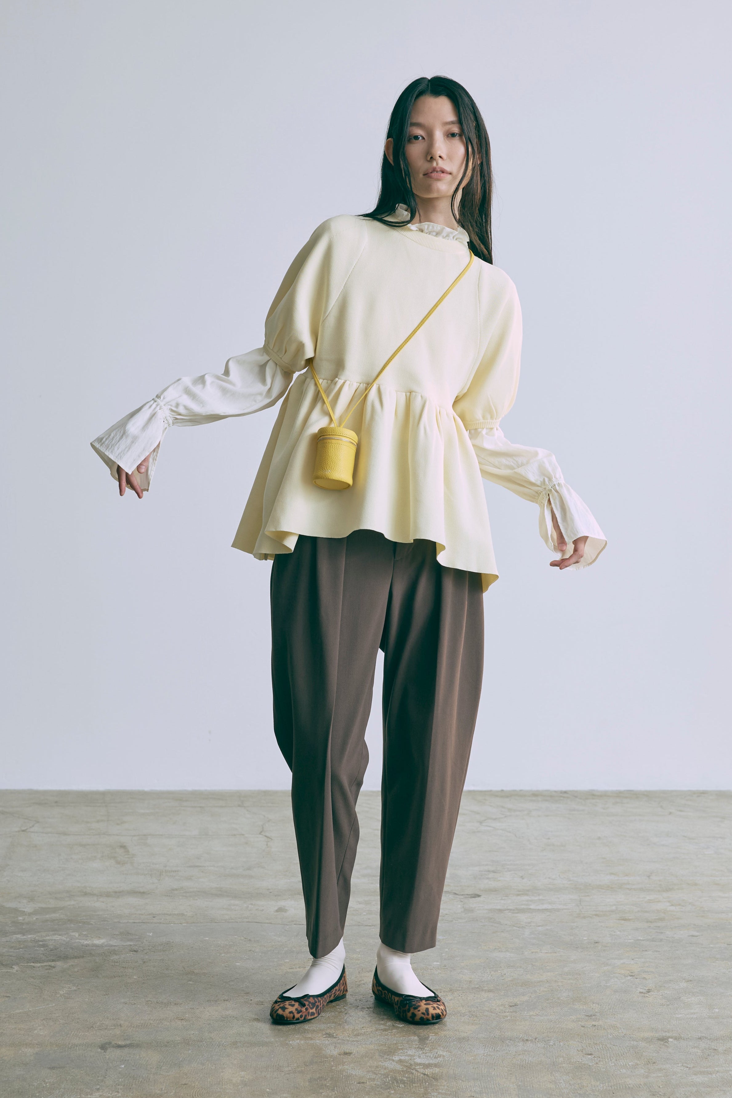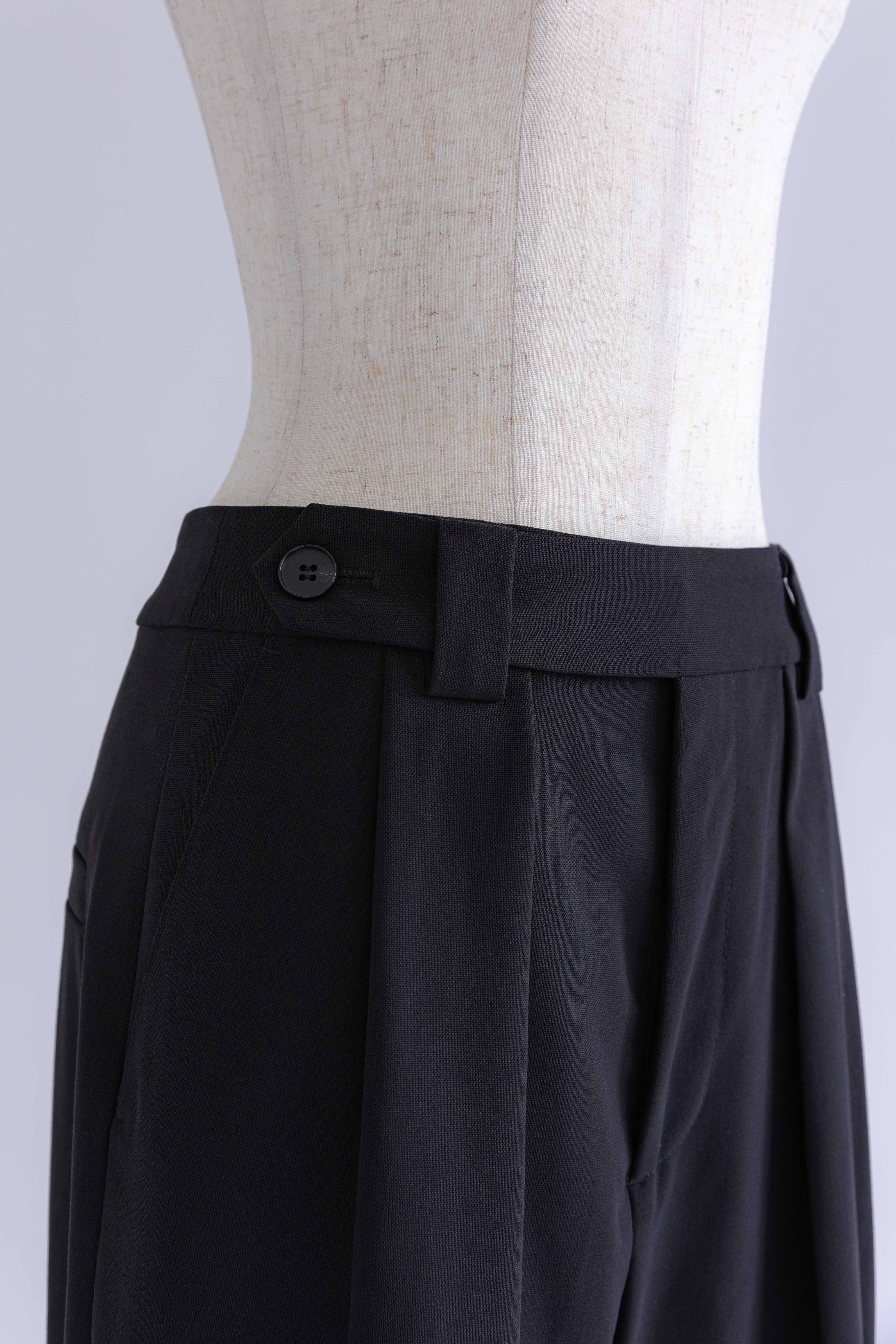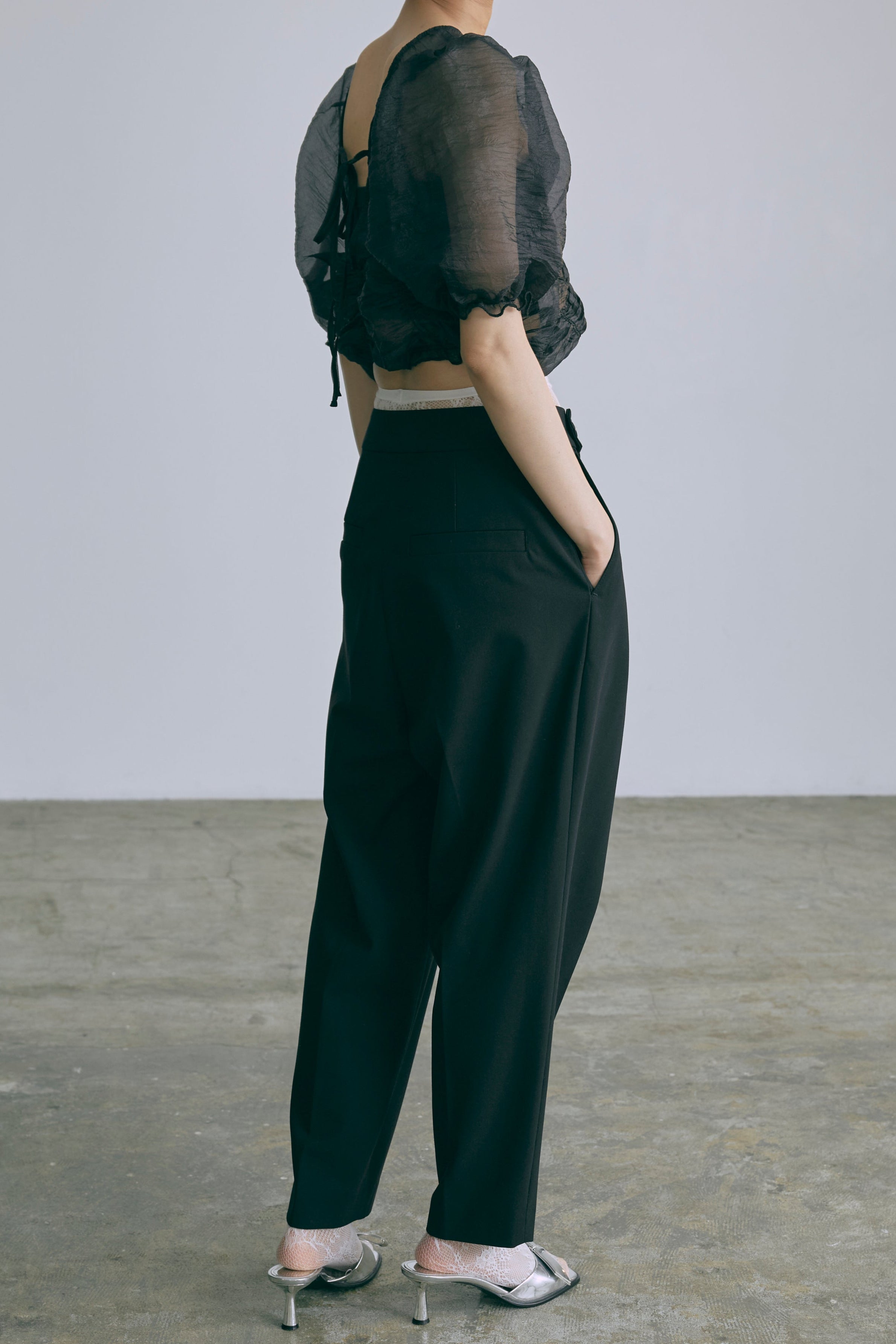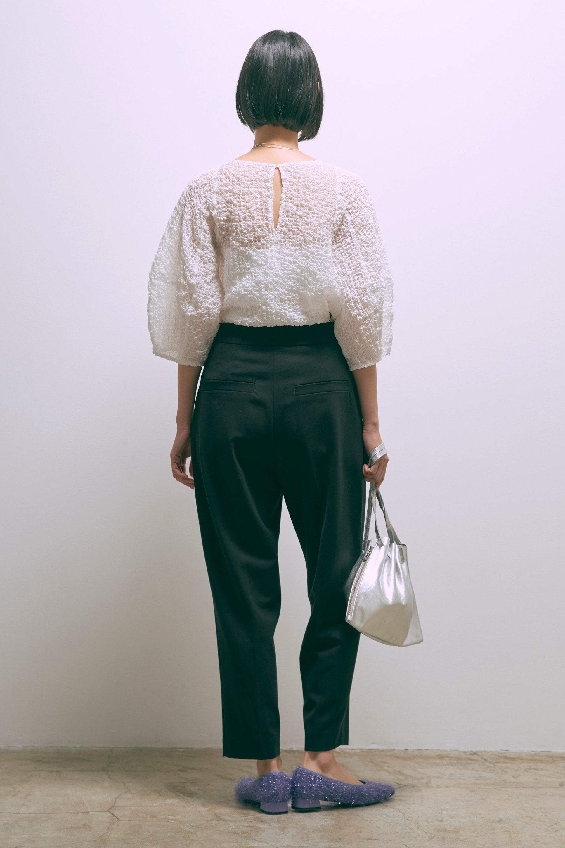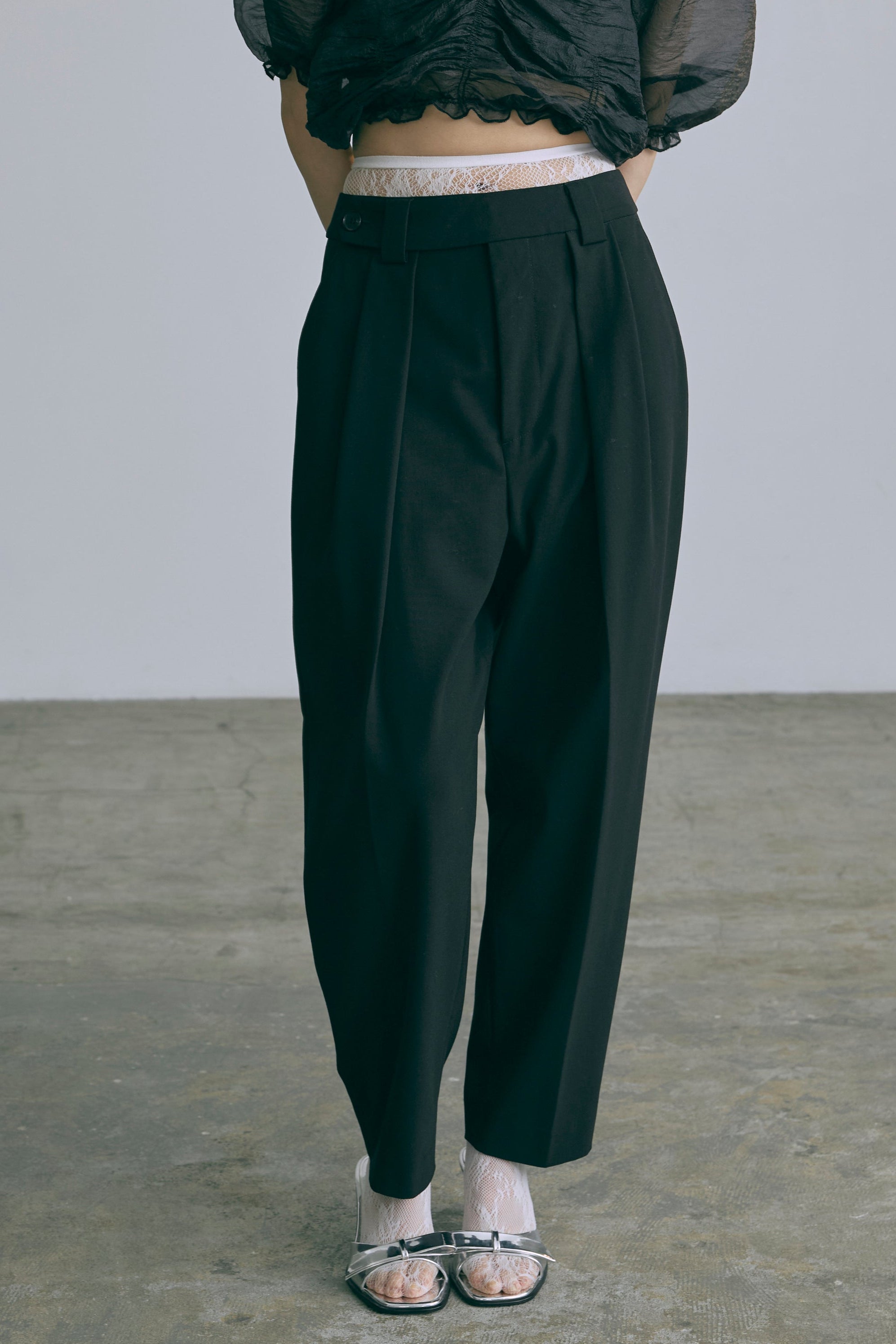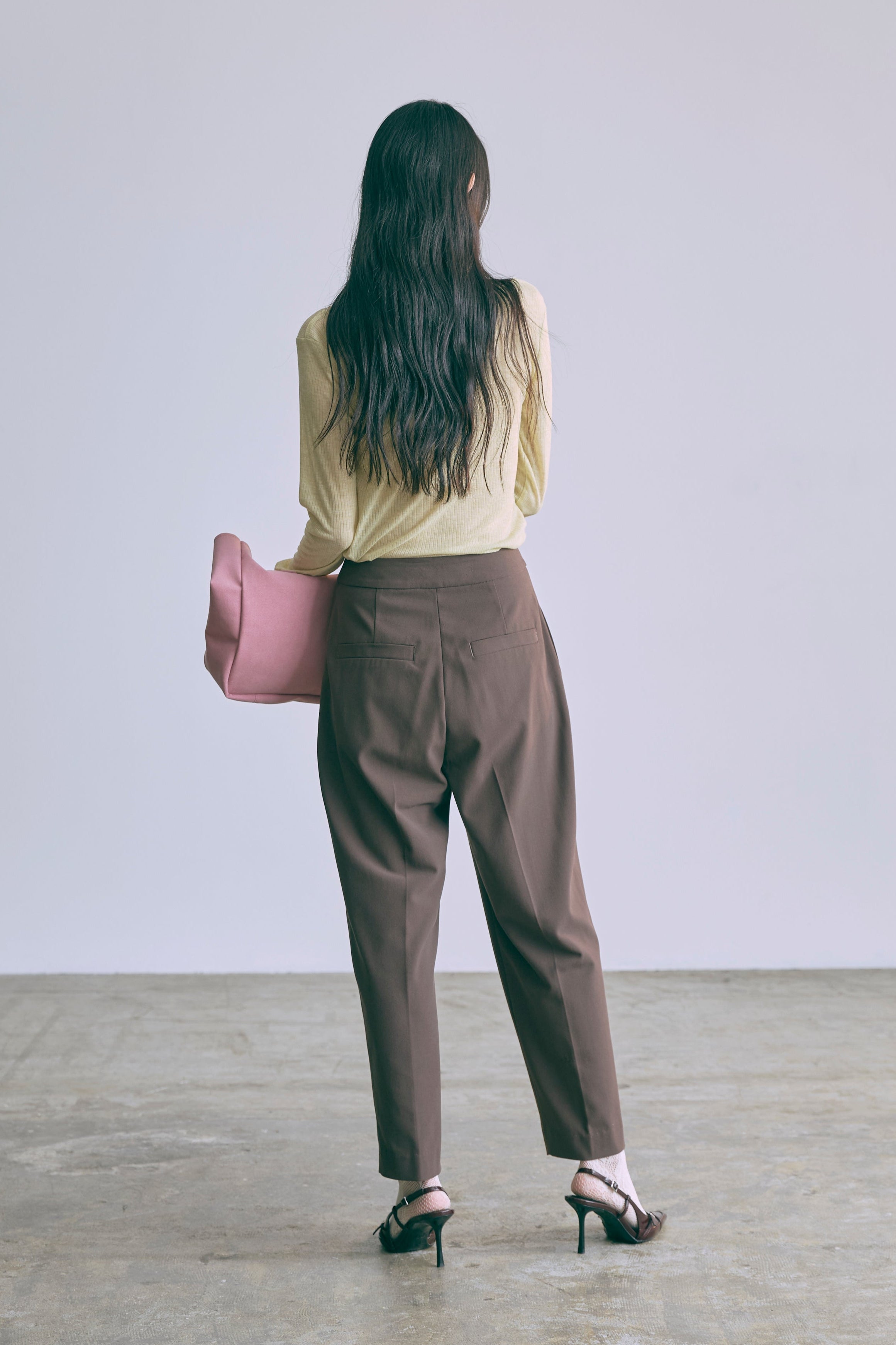 タック入りでリラックスしたシルエットが魅力。きれいめとリラクシー感を両立するトレンドの大本命パンツ バレルパンツ 【Material】 さらっとした肌触りで、夏の残暑にも快適に着られる生地を使用しています。肌離れが良く、シーズンを問わず心地よくお召しいただける素材です。 【Design】 ウエストにベルトデザインを取り入れ、丸みのある樽(バレル)型のリラックスしたシルエットが特徴です。タックがしっかりと入り、ハイウエストから裾に向かって緩やかに細くなるテーパードデザインが、オンオフ問わずさまざまなシーンで活躍します。 【Styling point】 タックインでスッキリとしたスタイルを演出し、タックアウトでリラクシーな雰囲気を楽しめます。タックインすると、よりスタイルアップが期待できます。