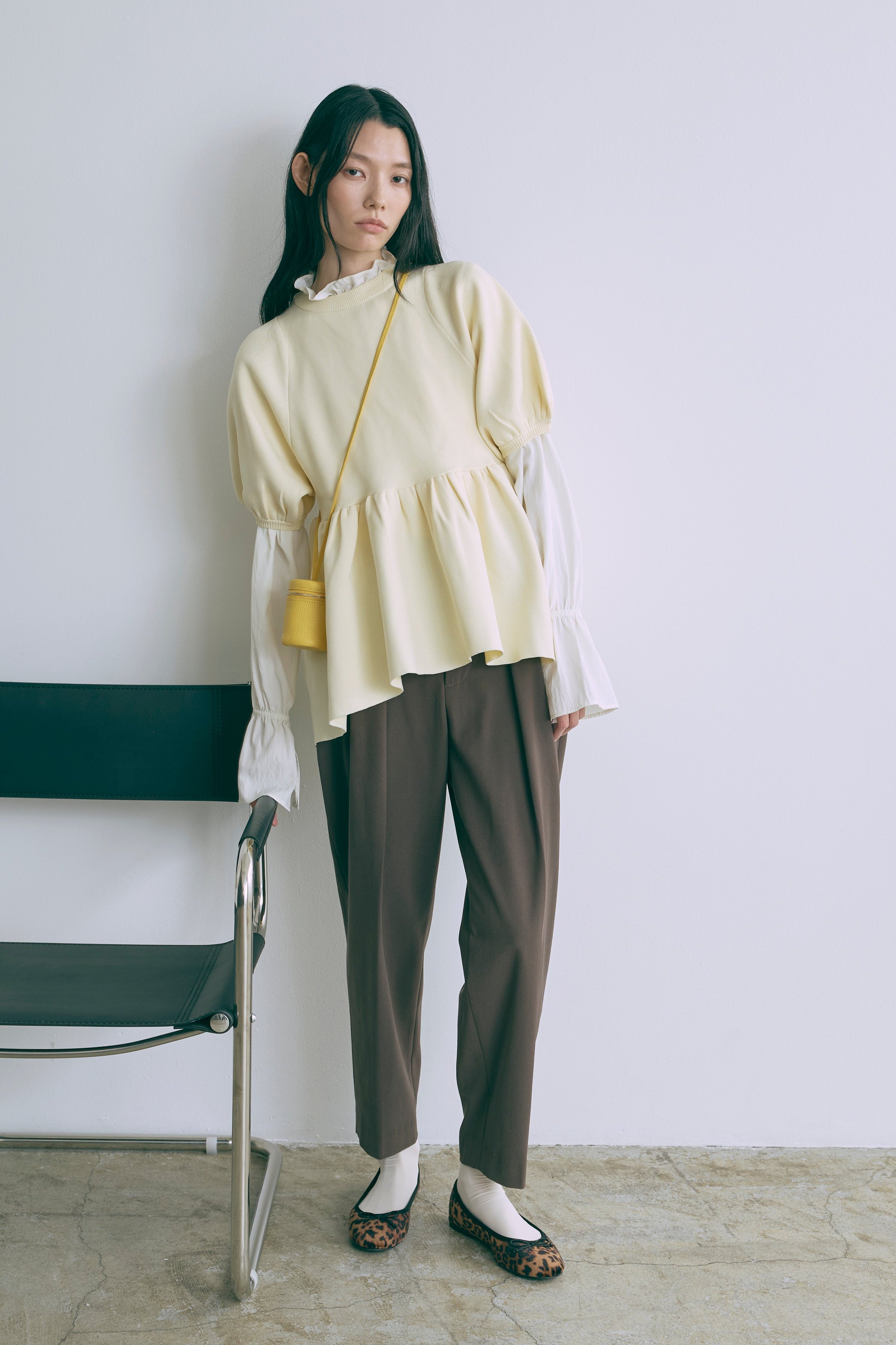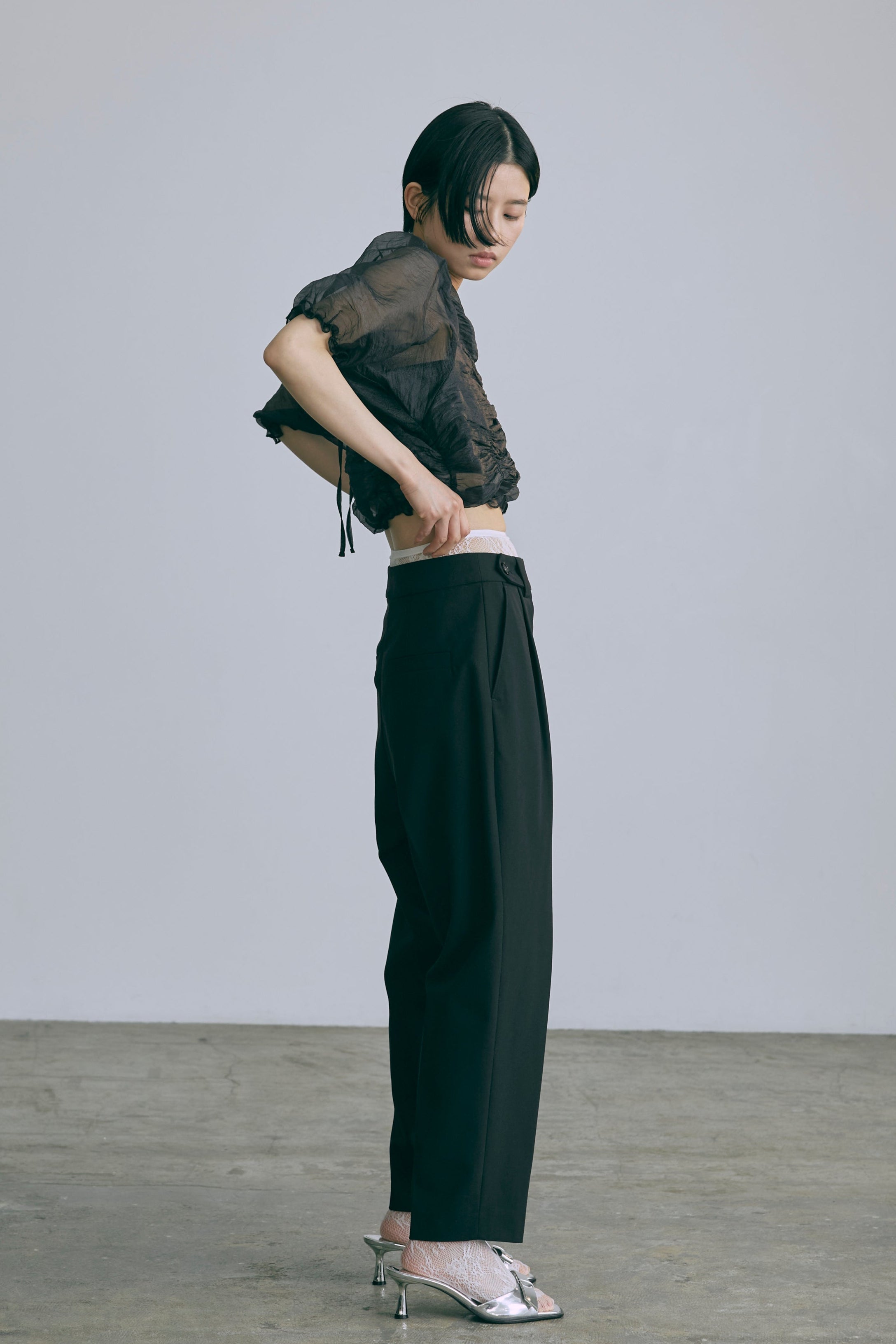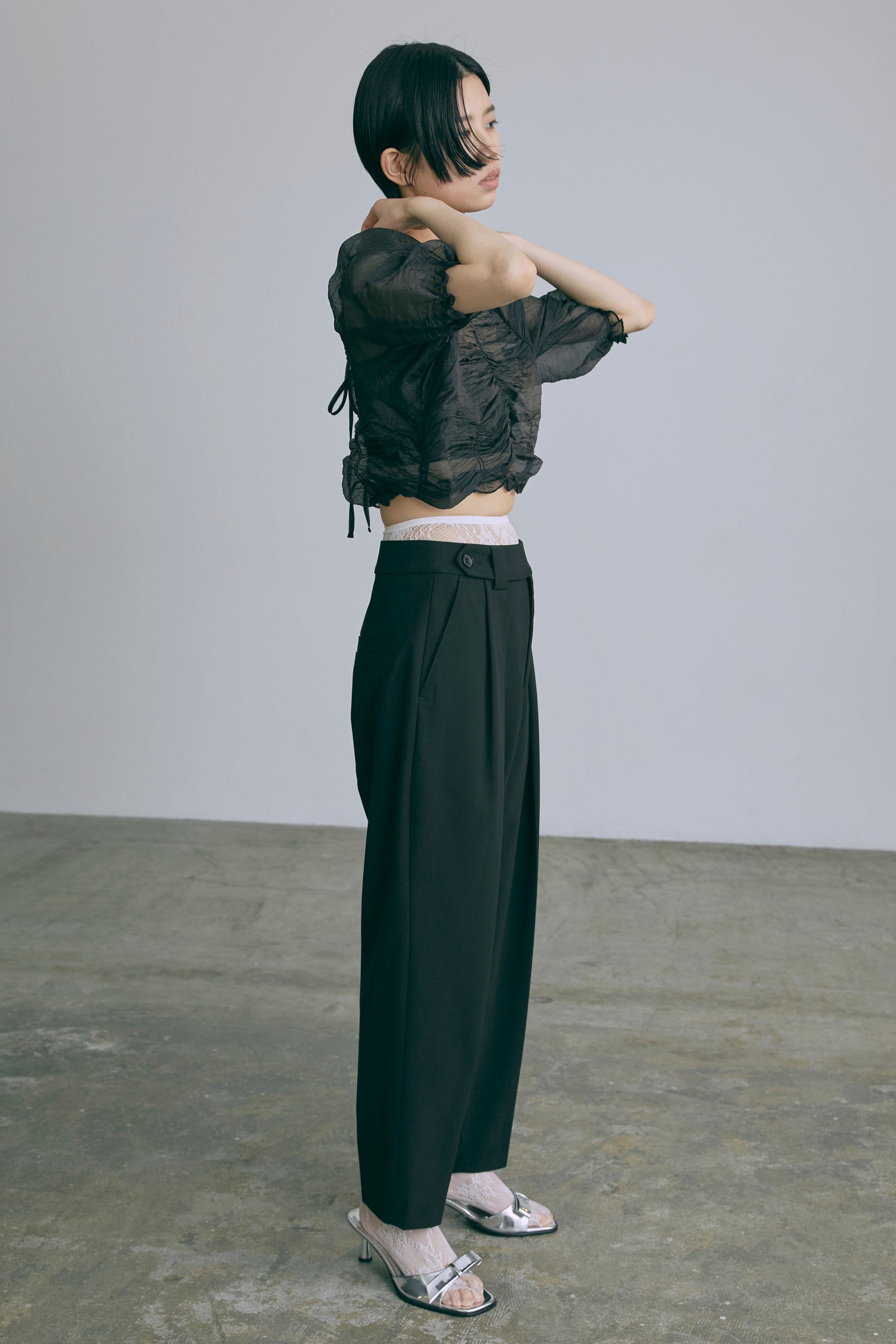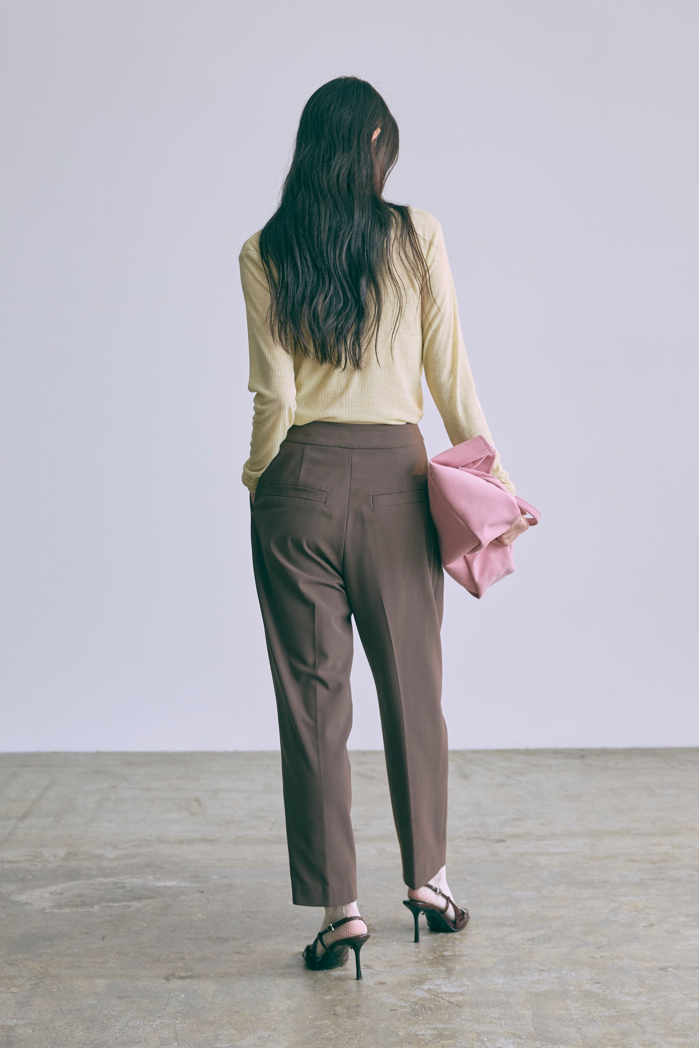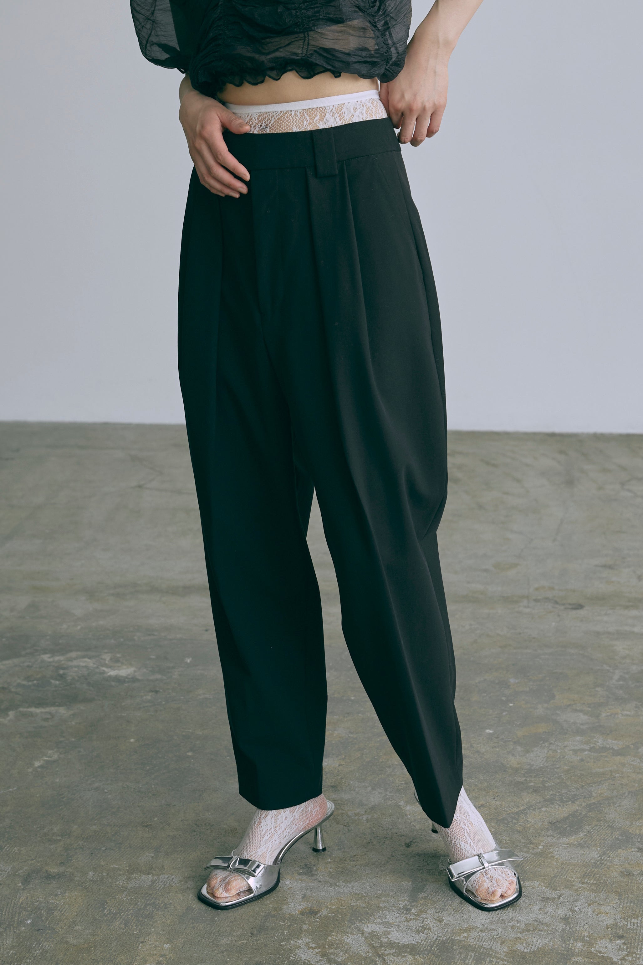 タック入りでリラックスしたシルエットが魅力。きれいめとリラクシー感を両立するトレンドの大本命パンツ バレルパンツ 【Material】 さらっとした肌触りで、夏の残暑にも快適に着られる生地を使用しています。肌離れが良く、シーズンを問わず心地よくお召しいただける素材です。 【Design】 ウエストにベルトデザインを取り入れ、丸みのある樽(バレル)型のリラックスしたシルエットが特徴です。タックがしっかりと入り、ハイウエストから裾に向かって緩やかに細くなるテーパードデザインが、オンオフ問わずさまざまなシーンで活躍します。 【Styling point】 タックインでスッキリとしたスタイルを演出し、タックアウトでリラクシーな雰囲気を楽しめます。タックインすると、よりスタイルアップが期待できます。