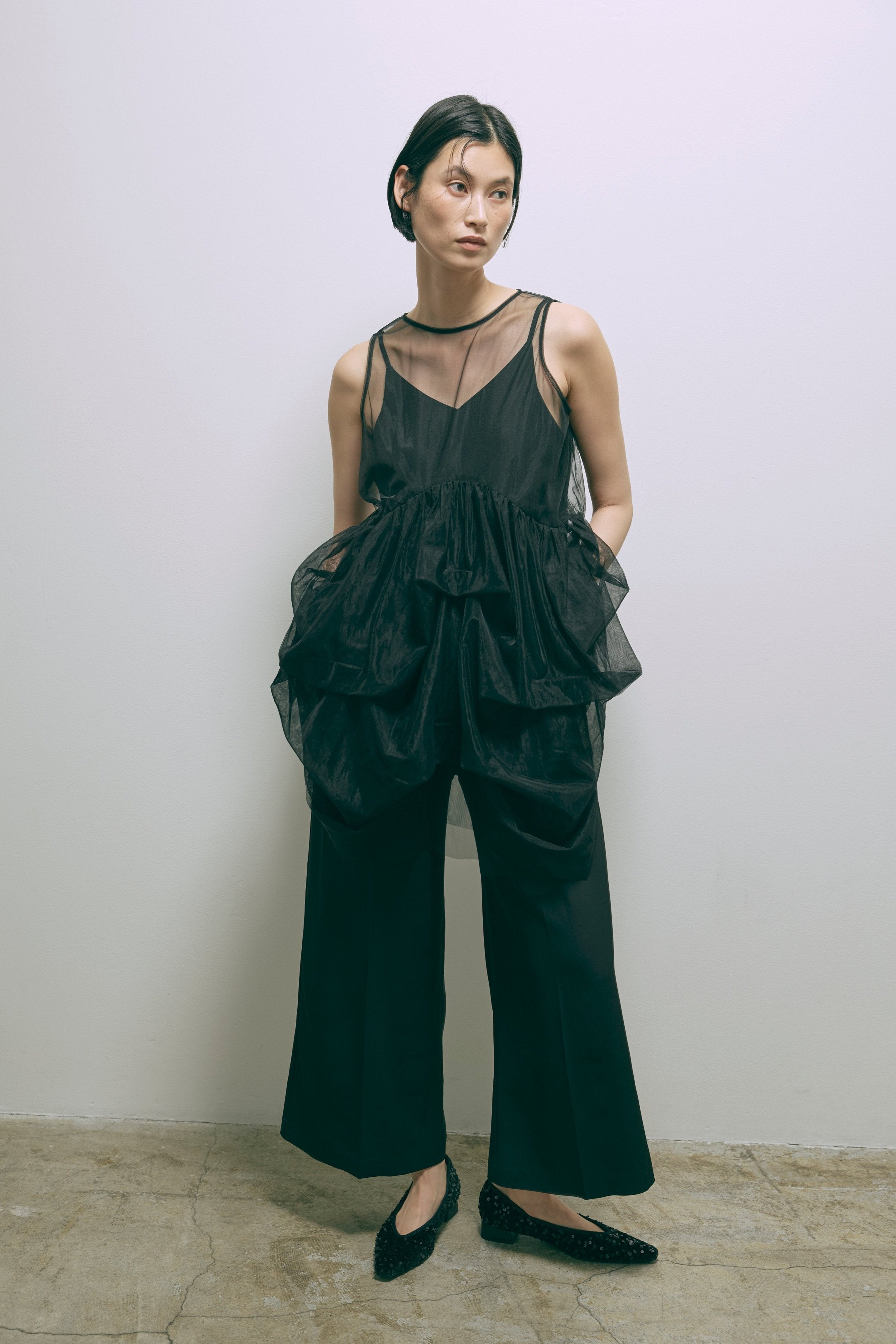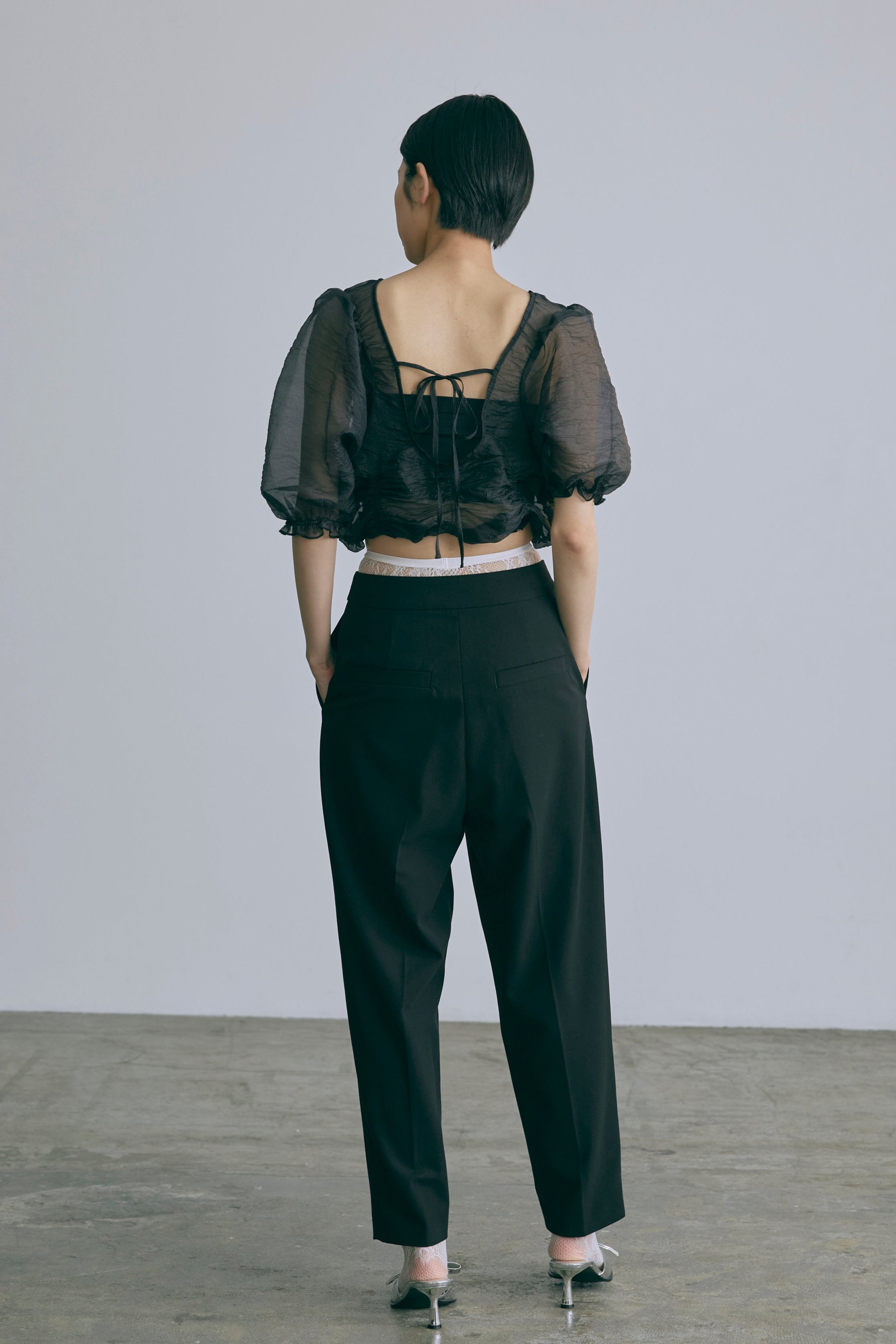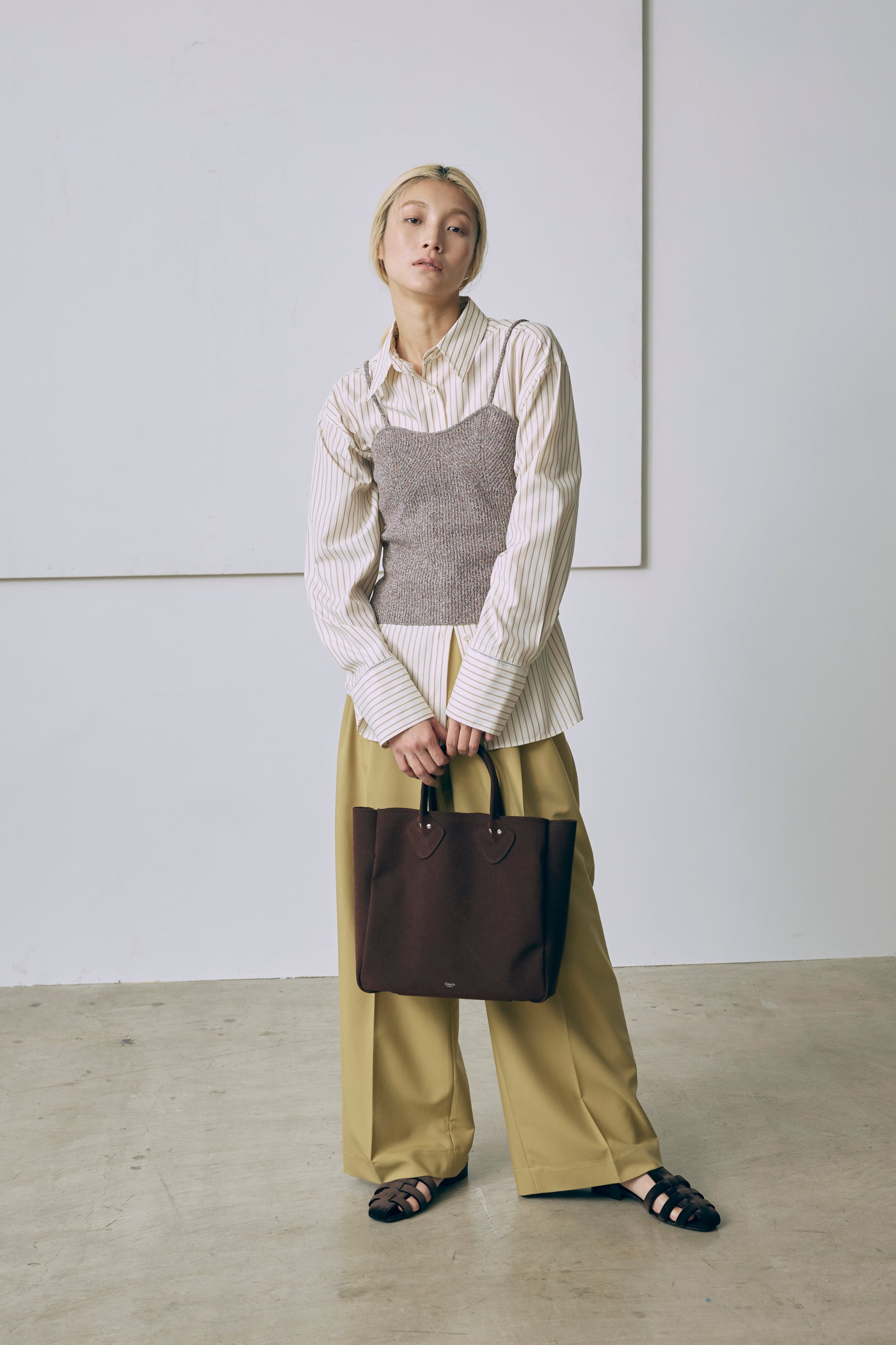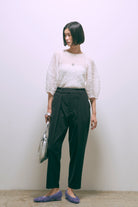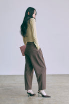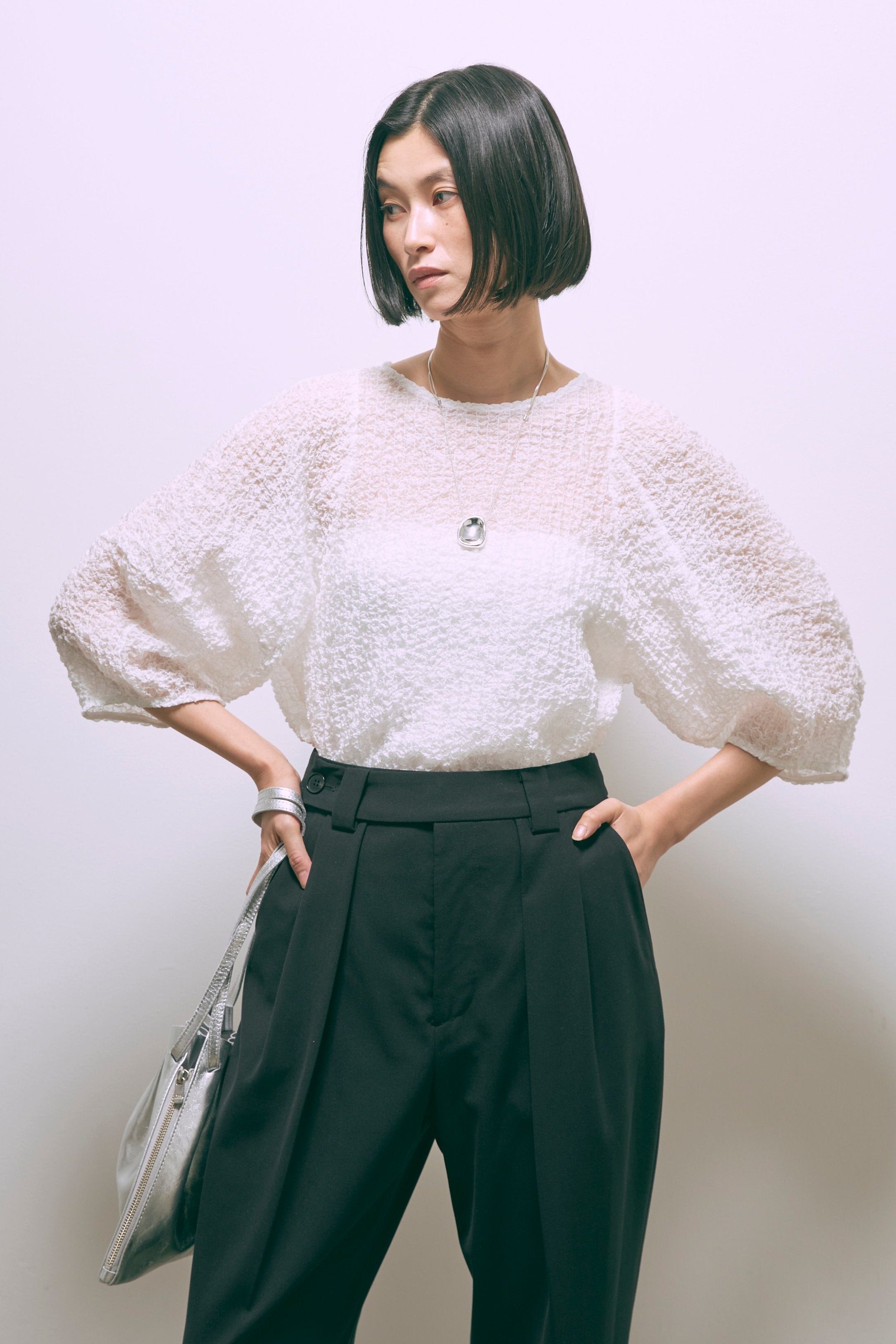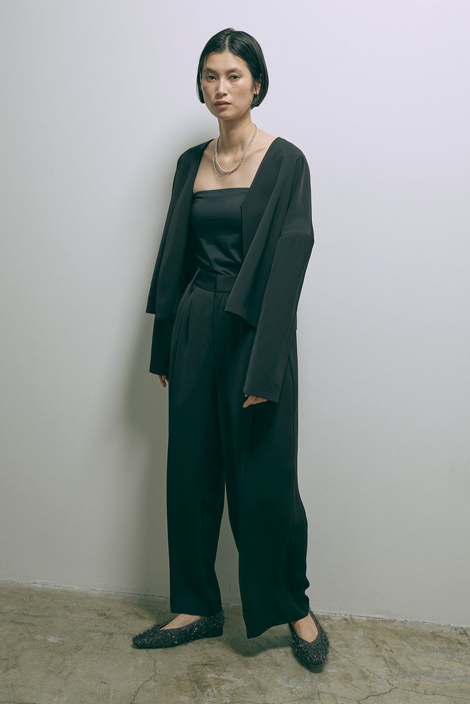 タック入りでリラックスしたシルエットが魅力。きれいめとリラクシー感を両立するトレンドの大本命パンツ バレルパンツ 【Material】 さらっとした肌触りで、夏の残暑にも快適に着られる生地を使用しています。肌離れが良く、シーズンを問わず心地よくお召しいただける素材です。 【Design】 ウエストにベルトデザインを取り入れ、丸みのある樽(バレル)型のリラックスしたシルエットが特徴です。タックがしっかりと入り、ハイウエストから裾に向かって緩やかに細くなるテーパードデザインが、オンオフ問わずさまざまなシーンで活躍します。 【Styling point】 タックインでスッキリとしたスタイルを演出し、タックアウトでリラクシーな雰囲気を楽しめます。タックインすると、よりスタイルアップが期待できます。