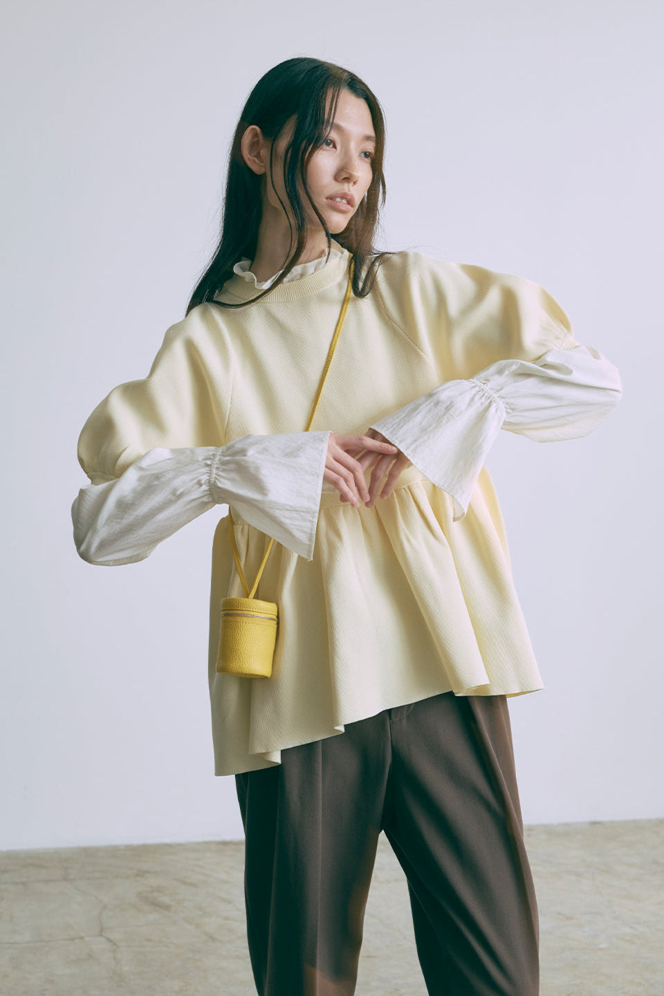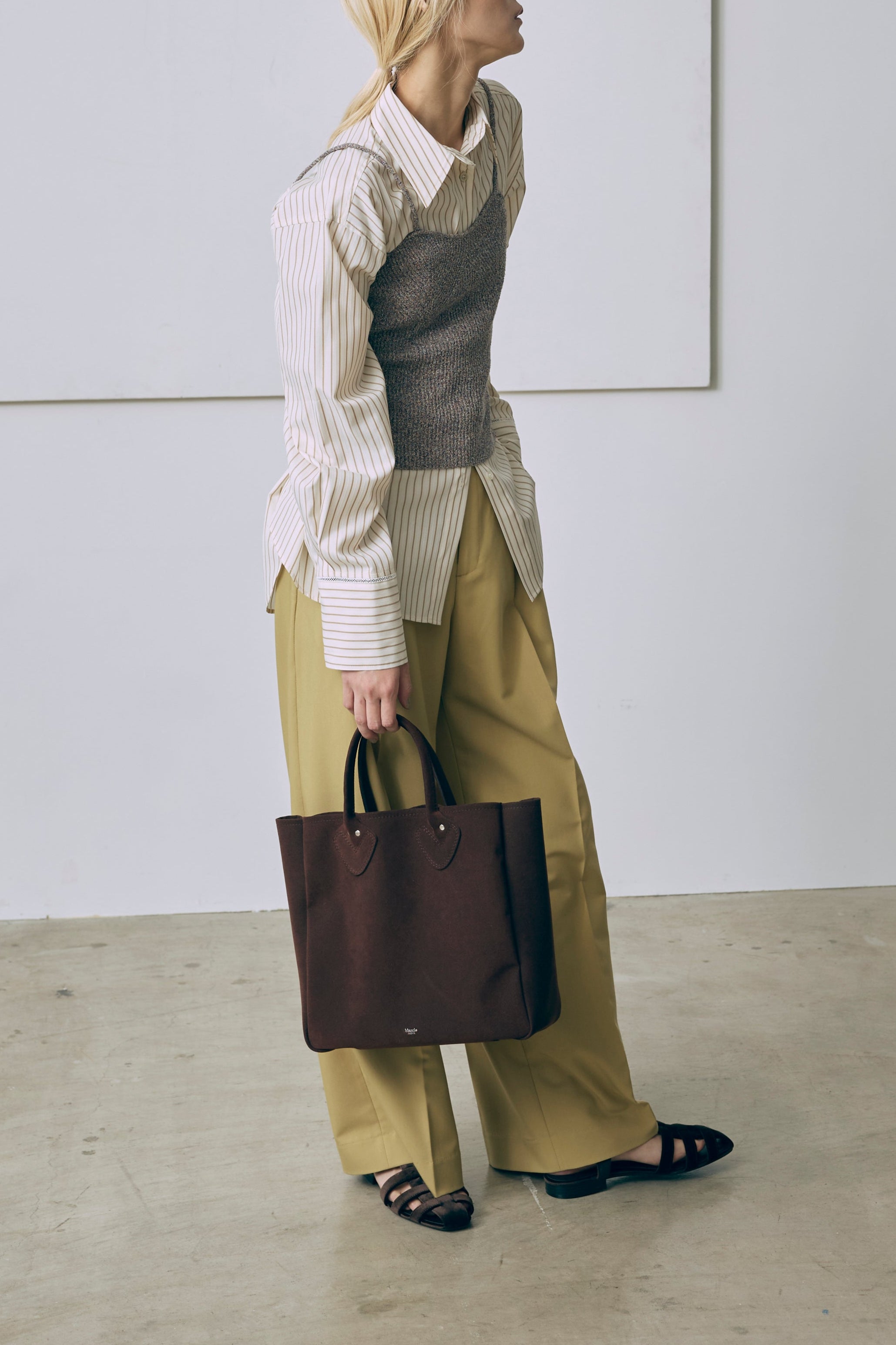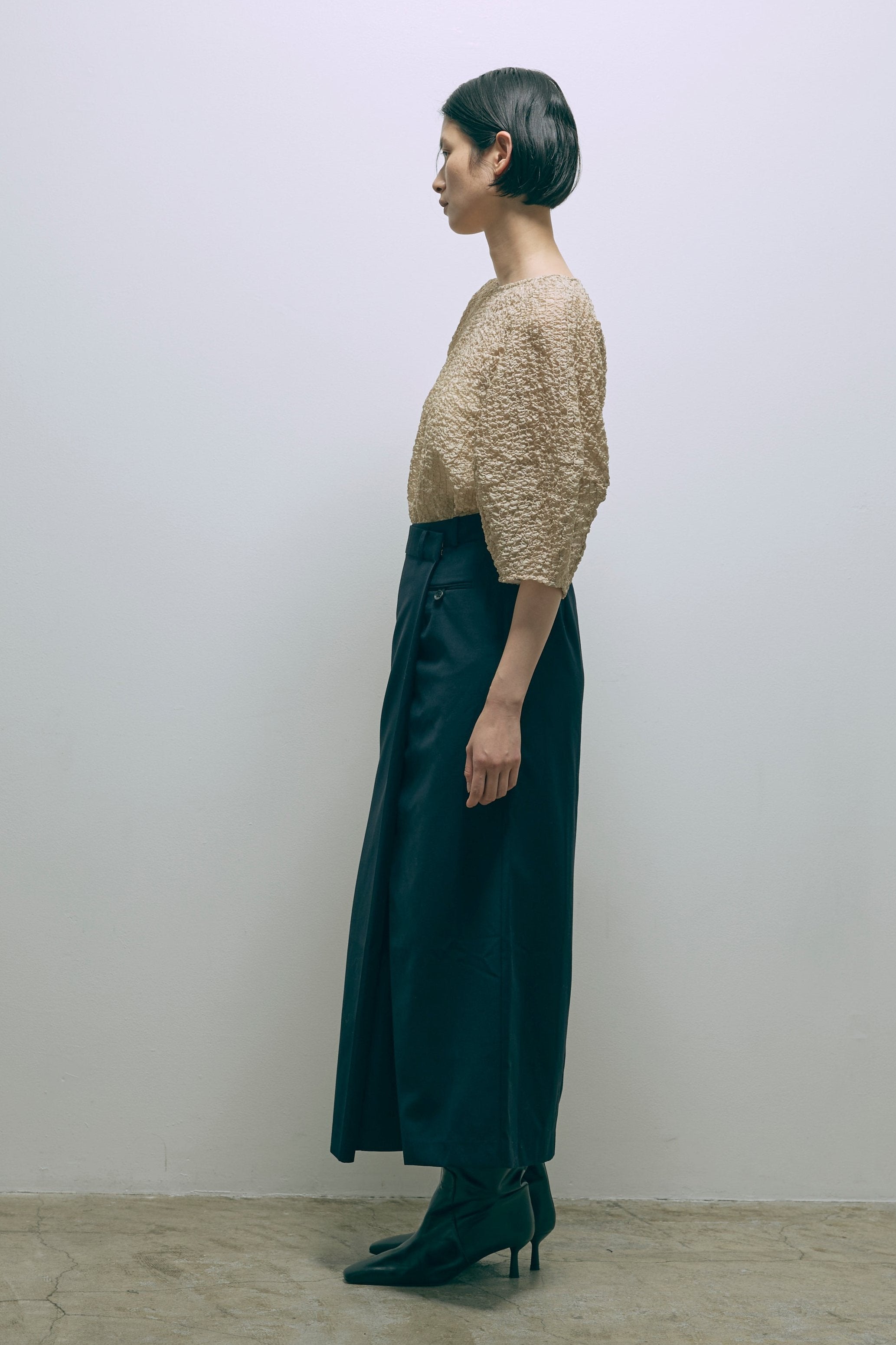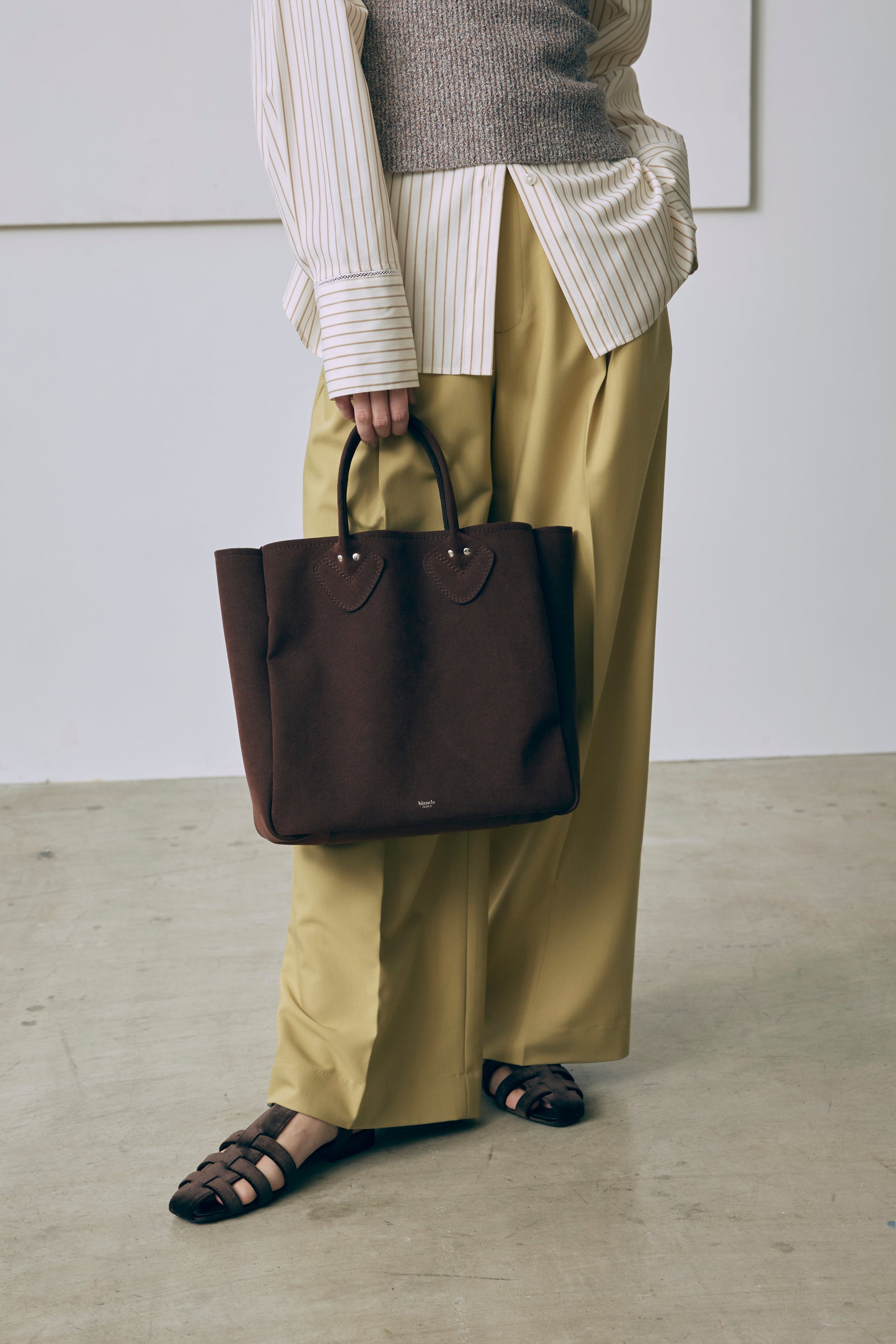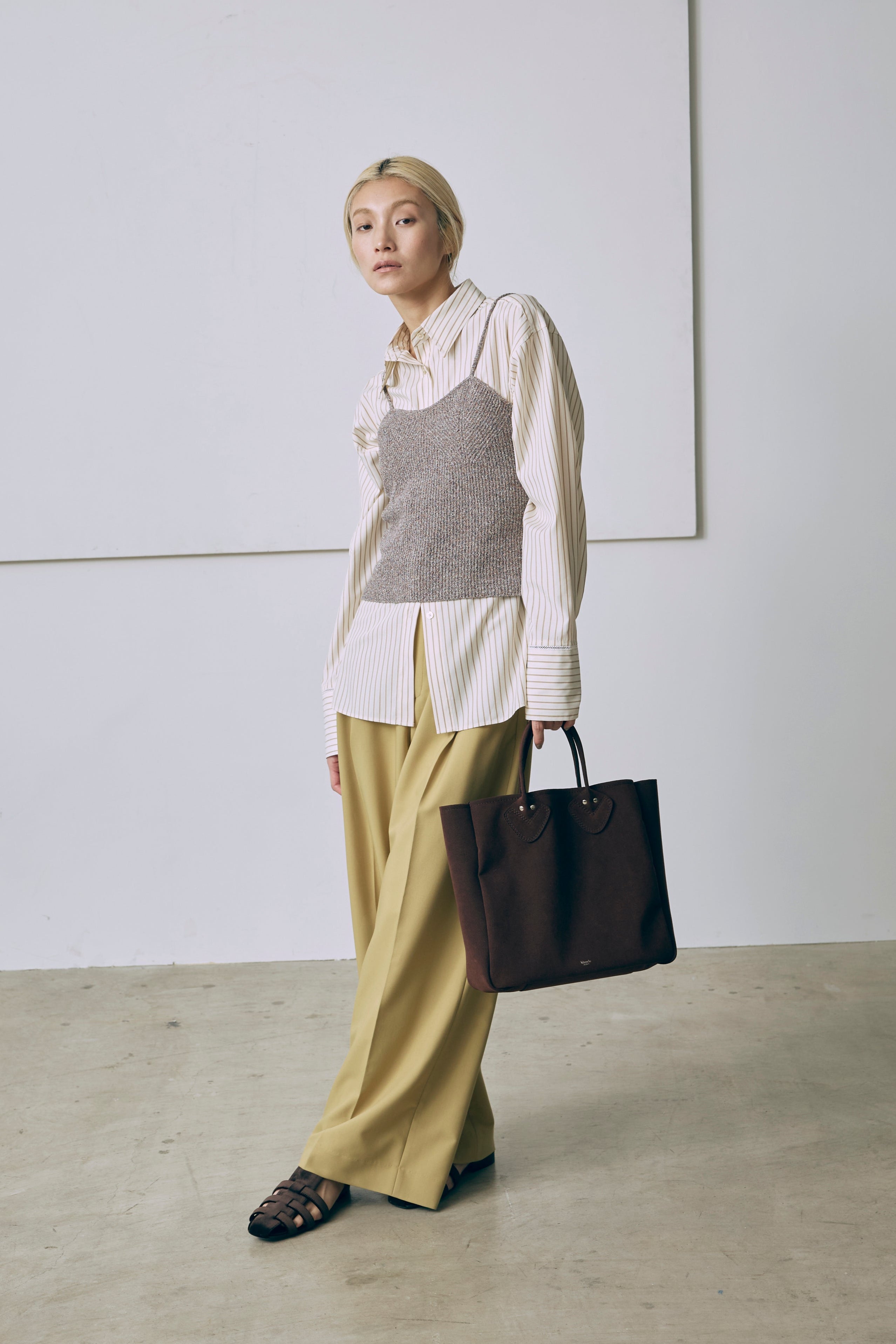 タック入りでリラックスしたシルエットが魅力。きれいめとリラクシー感を両立するトレンドの大本命パンツ バレルパンツ 【Material】 さらっとした肌触りで、夏の残暑にも快適に着られる生地を使用しています。肌離れが良く、シーズンを問わず心地よくお召しいただける素材です。 【Design】 ウエストにベルトデザインを取り入れ、丸みのある樽(バレル)型のリラックスしたシルエットが特徴です。タックがしっかりと入り、ハイウエストから裾に向かって緩やかに細くなるテーパードデザインが、オンオフ問わずさまざまなシーンで活躍します。 【Styling point】 タックインでスッキリとしたスタイルを演出し、タックアウトでリラクシーな雰囲気を楽しめます。タックインすると、よりスタイルアップが期待できます。