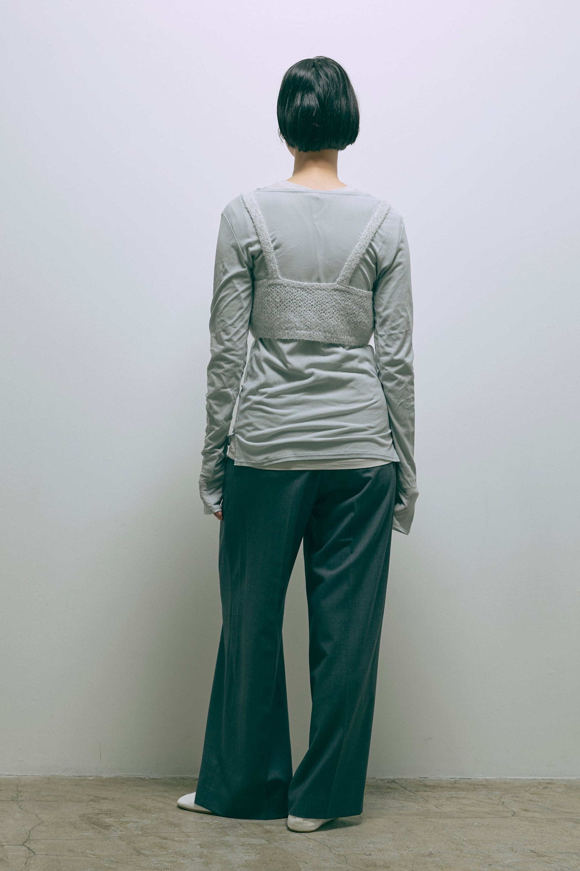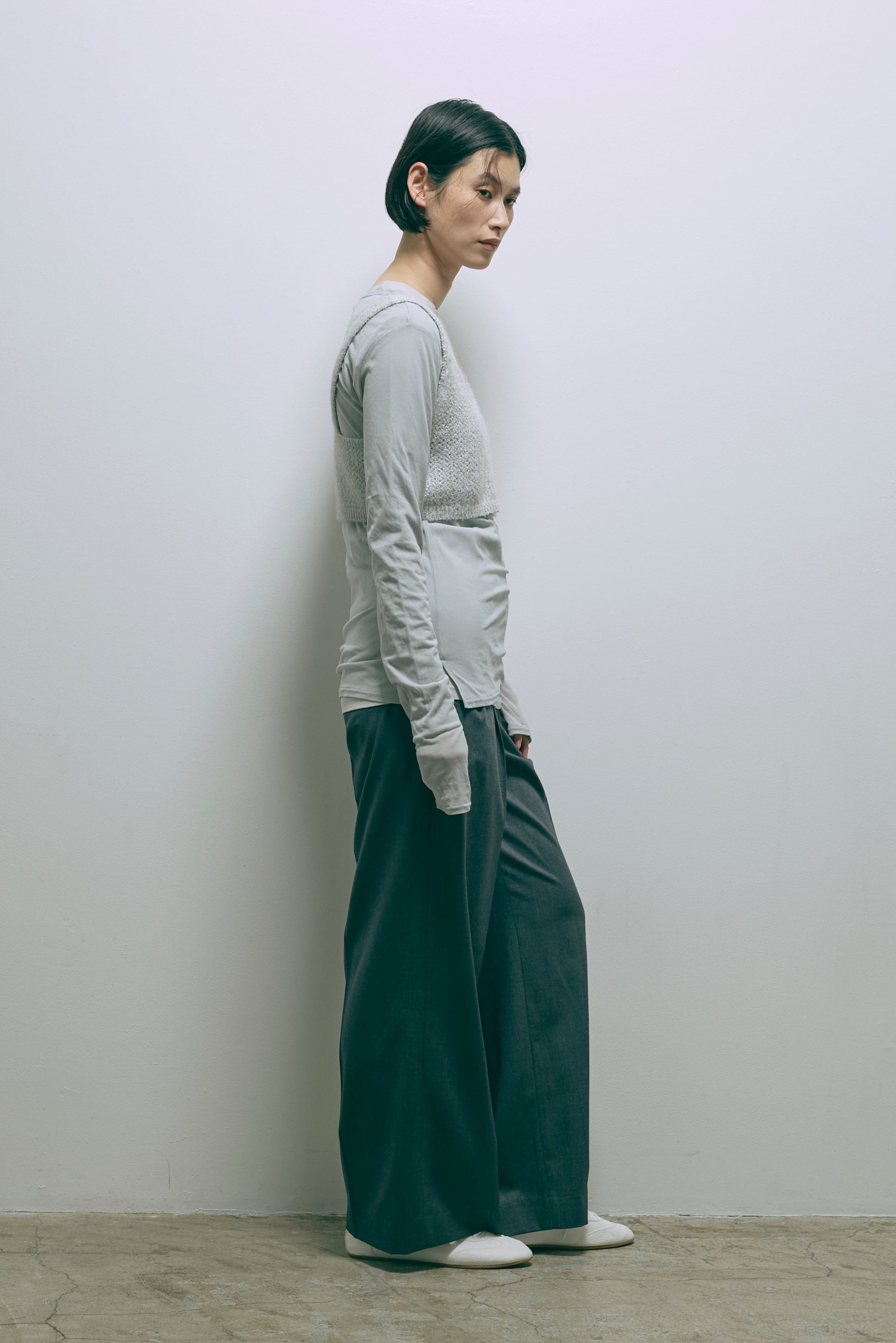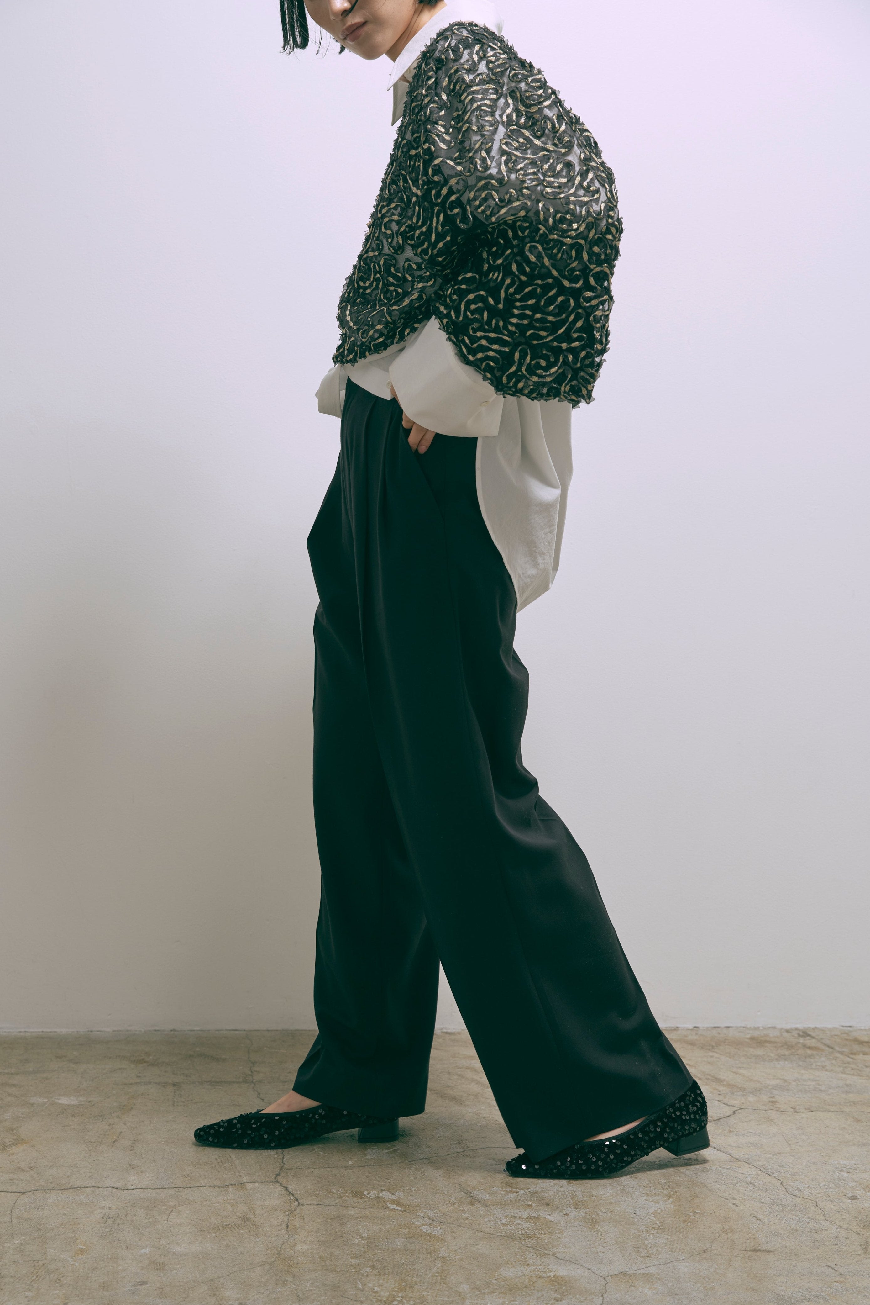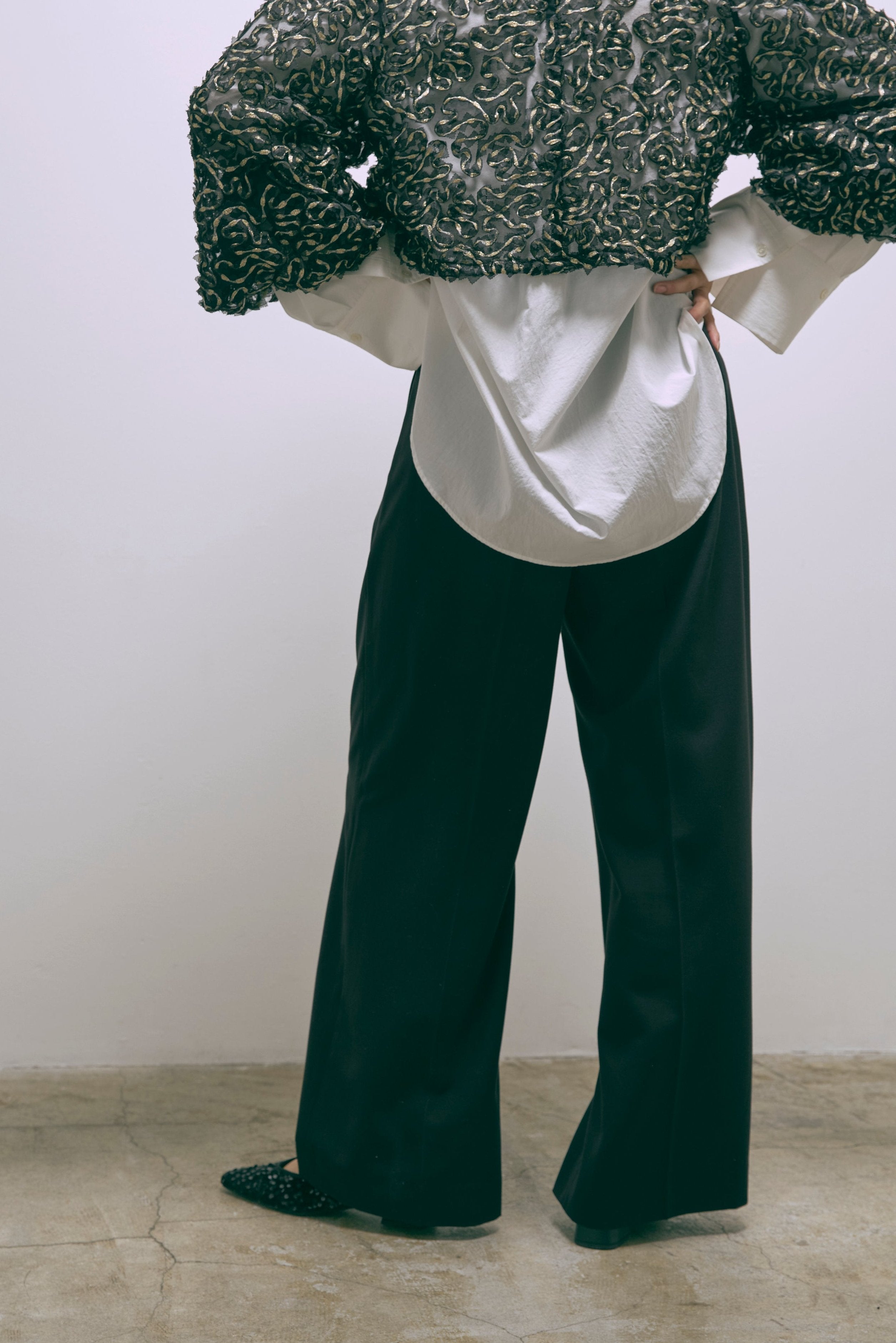 普段使いからオケージョンシーンまで幅広く活躍するマルチウェイアイテム マルチウェイチュールカラー 【Material】 着用時のボリューム感を考慮して、二種類のチュールを使用しました。フロントのリボンはサテン紐で上品に仕上げています。 ※素材の特性上、静電気でチュールが張り付くことがあります。着用前に静電気防止スプレーの使用をお勧めします。 【Design】 異なる目の荒さや硬さのチュールを重ね、立体的なフリルを実現しました。左右のカッティングが異なりながらも、バランスよく見えるようにこだわったデザインです。 【Styling point】 フロントをリボンで結んで付け衿として着用するほか、たすき掛けにして斜めに結んだり、結ばずに肩にゆるっと掛けたりできます。また、腰に巻いてスカートレイヤード風にもアレンジ可能です。結び目を中心から少し横にずらすと、バランスが取りやすくなります。